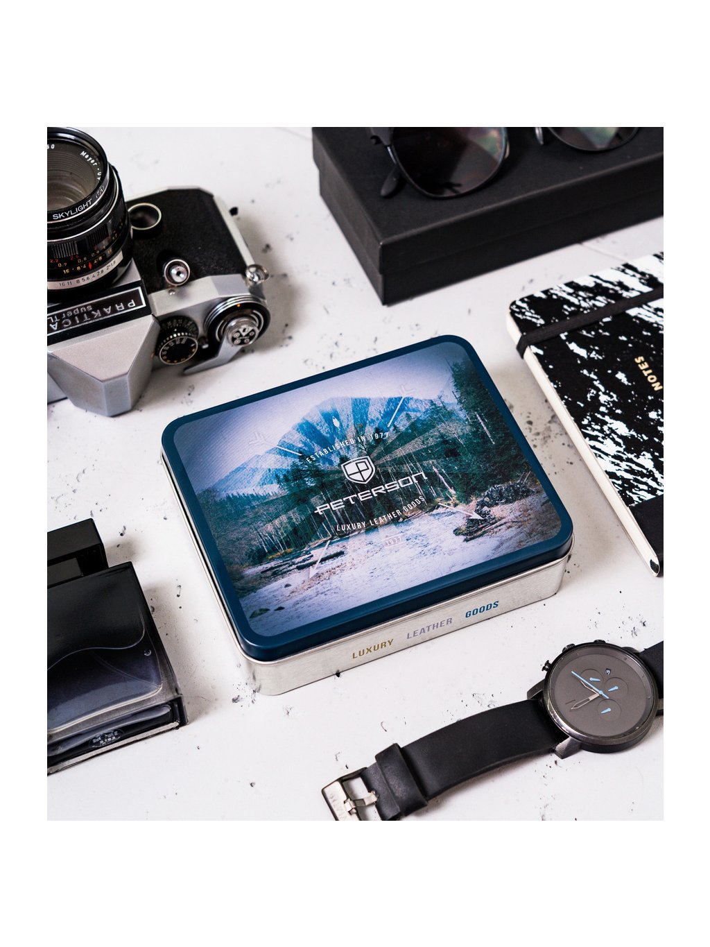 - uvnitř je kapsa na mince na patent, 2 přihrádky na bankovky, 9 míst na karty, 4 místa na větší doklady, kapsa na zip