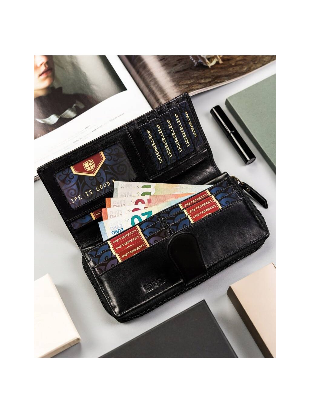 PETERSON ČERNÁ VELKÁ DÁMSKÁ PENĚŽENKA NA ZIP A PATENTKU Y427