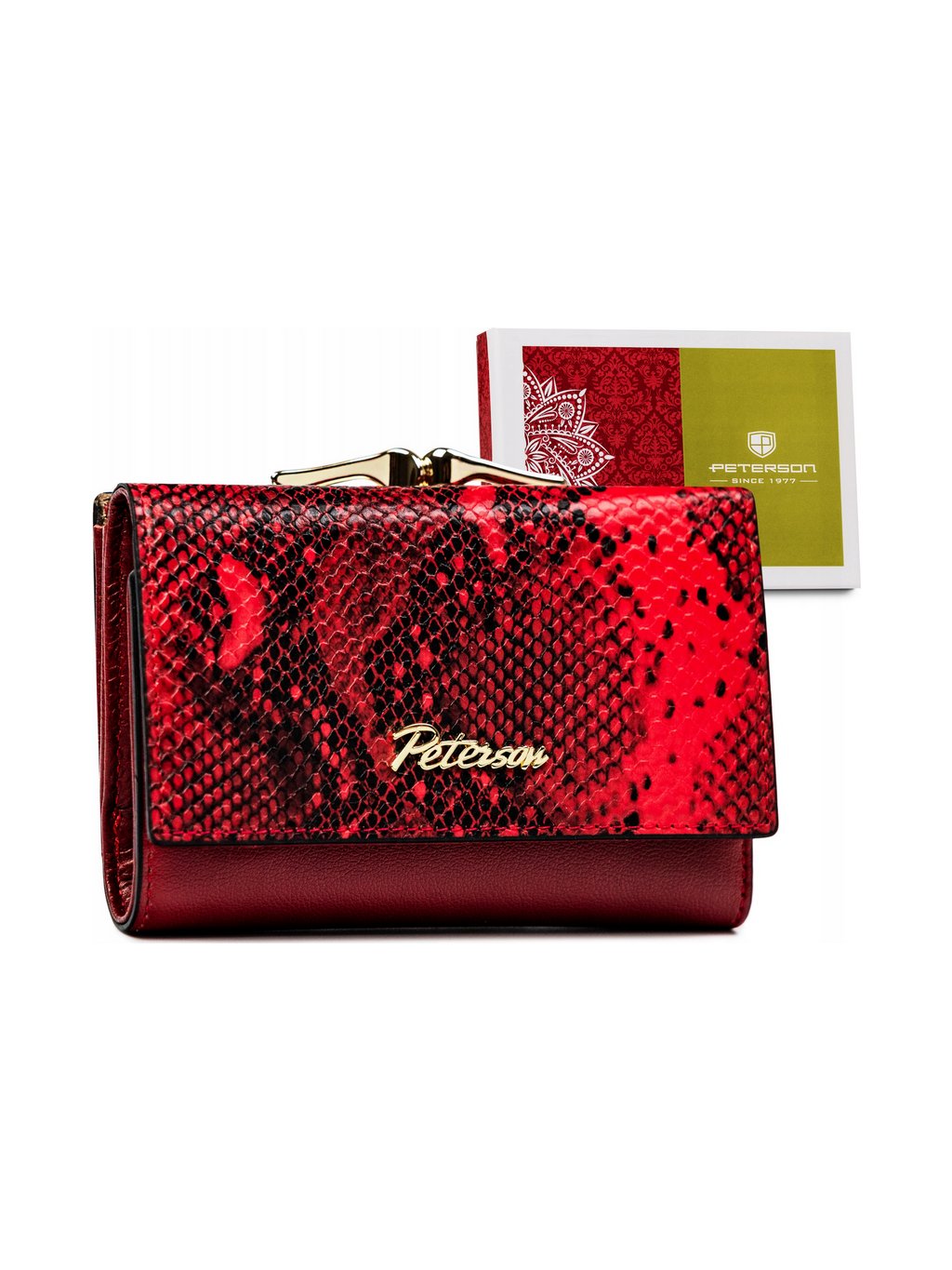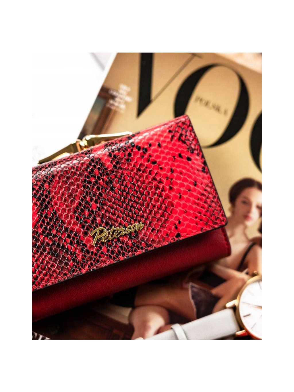 PETERSON ČERVENÁ STŘEDNÍ KOŽENÁ PENĚŽENKA S HADÍM POTISKEM Y254