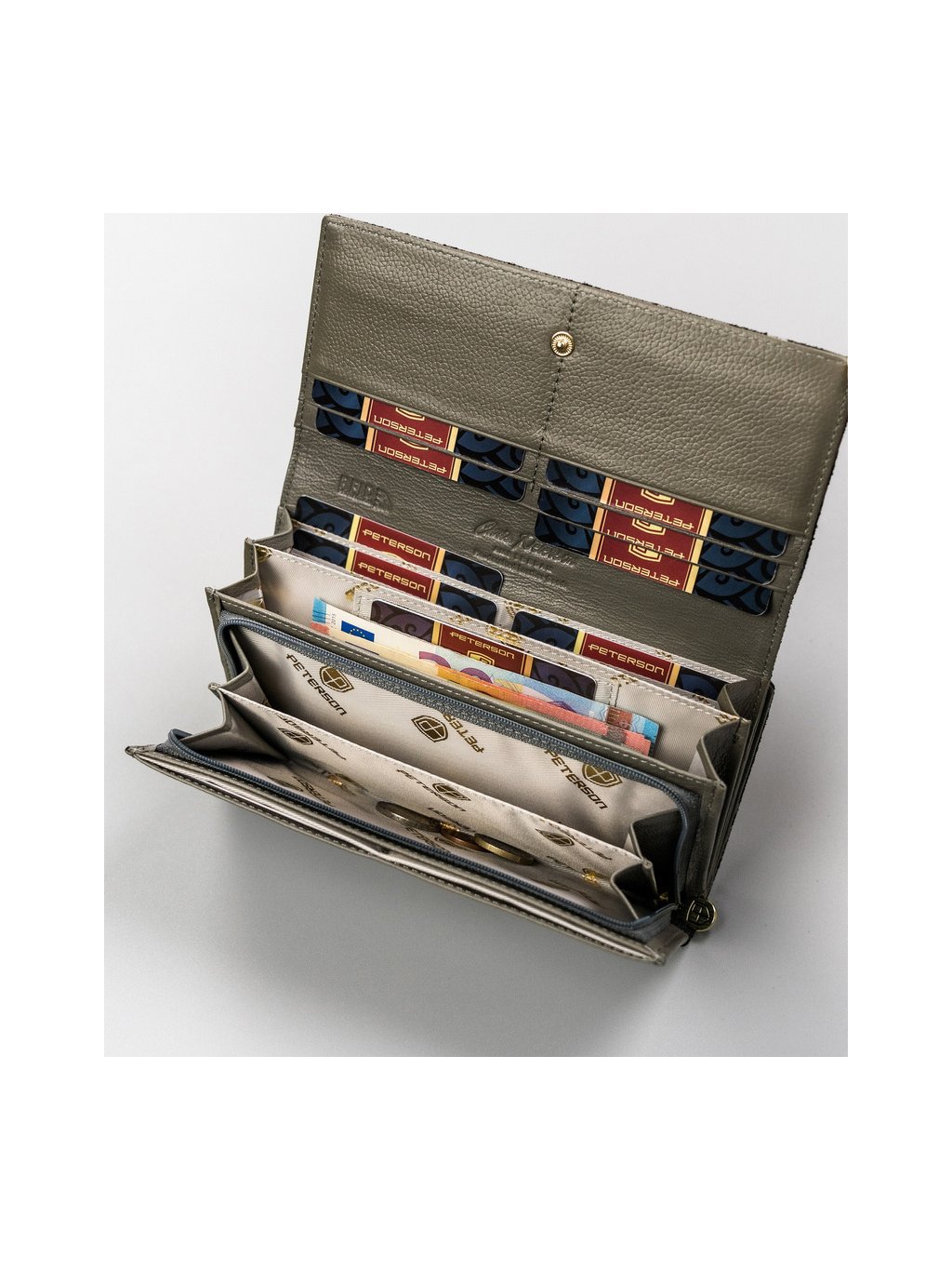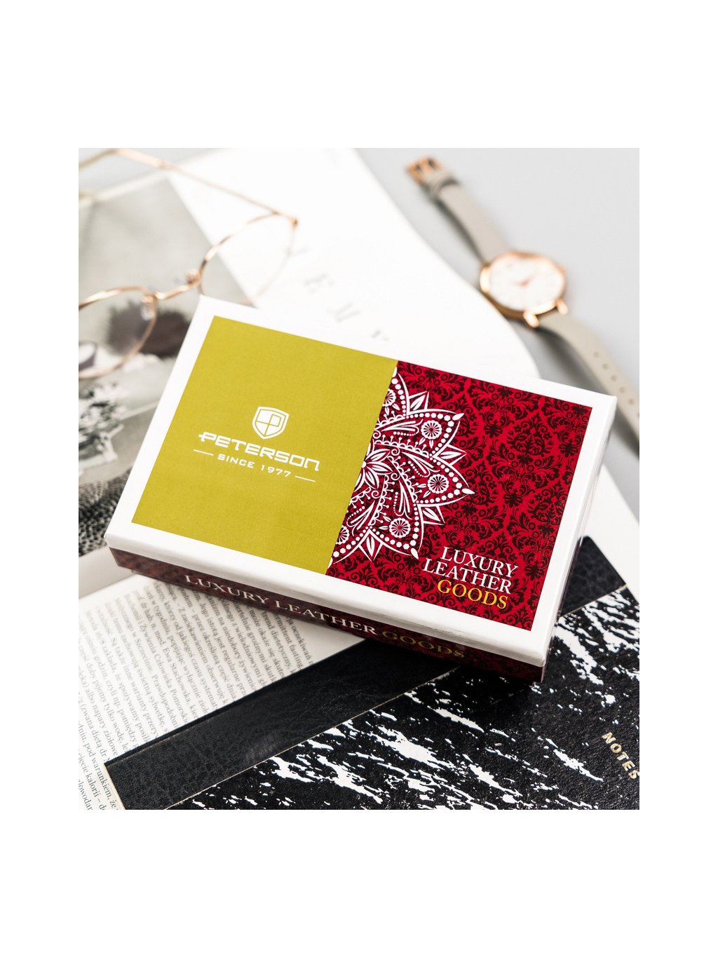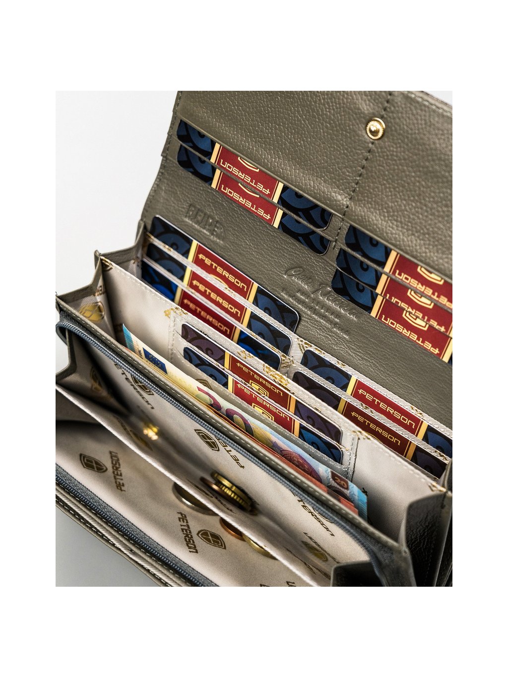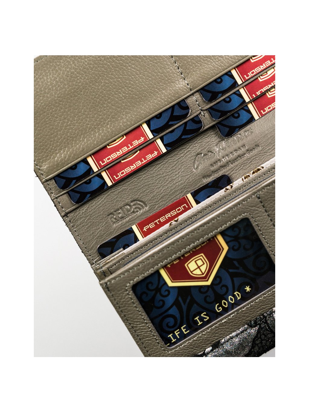 • uvnitř peněženky jsou 2 přihrádky na bankovky, dvojitá kapsa na mince na zip, 25 míst na karty, 4 místa na větší doklady