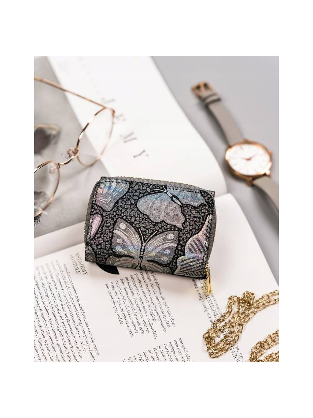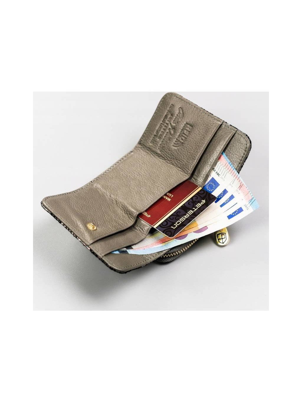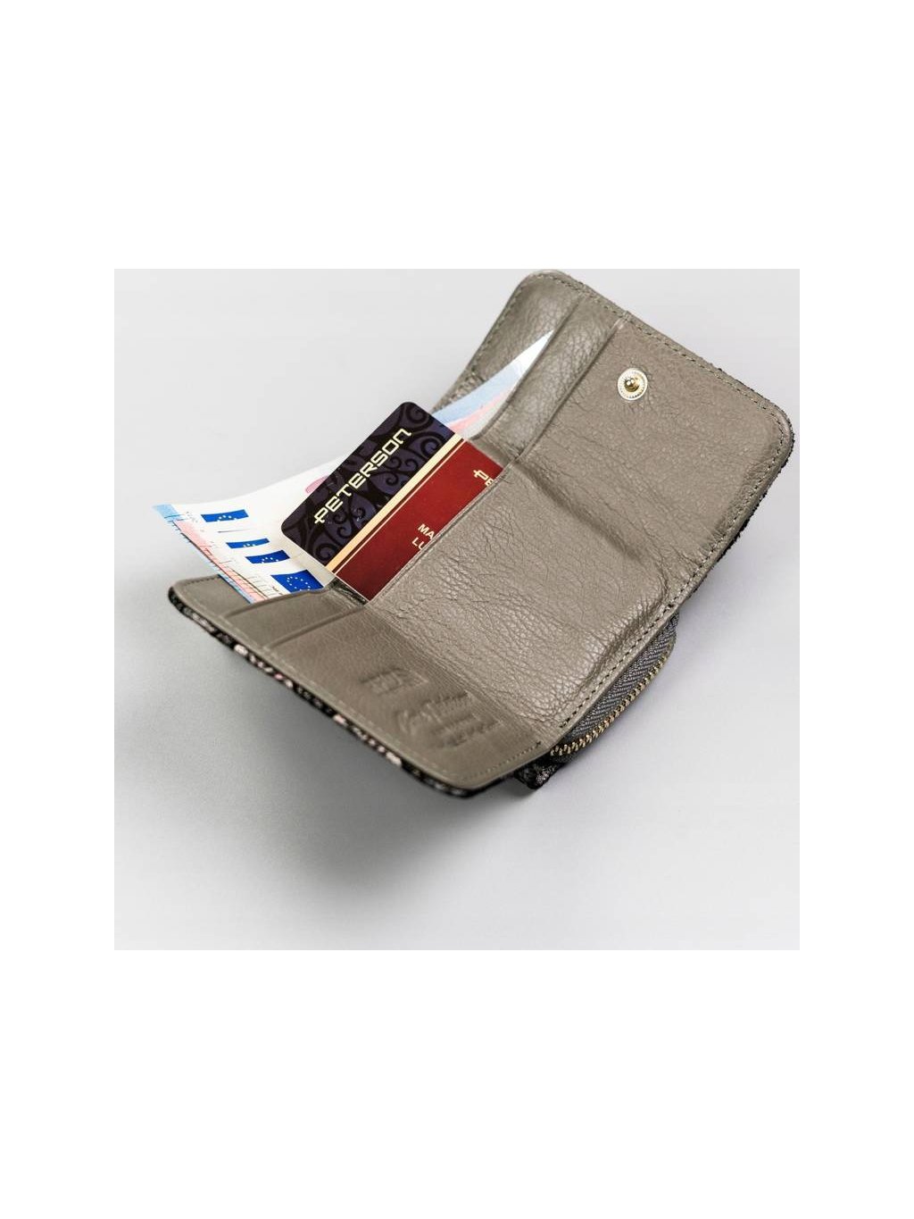 PETERSON ŠEDÁ MALÁ PENĚŽENKA S HOLOGRAFICKÝM POTISKEM Y131