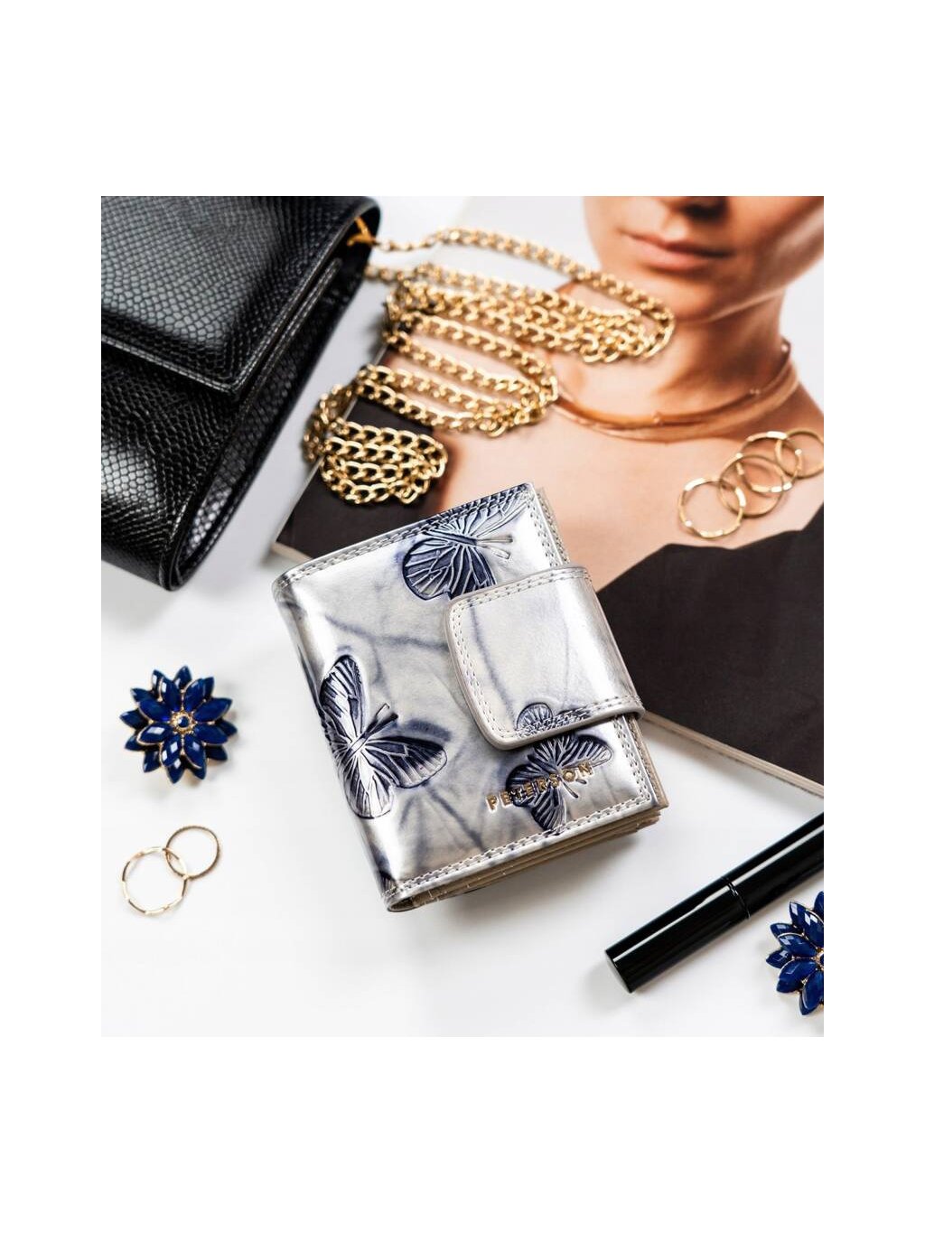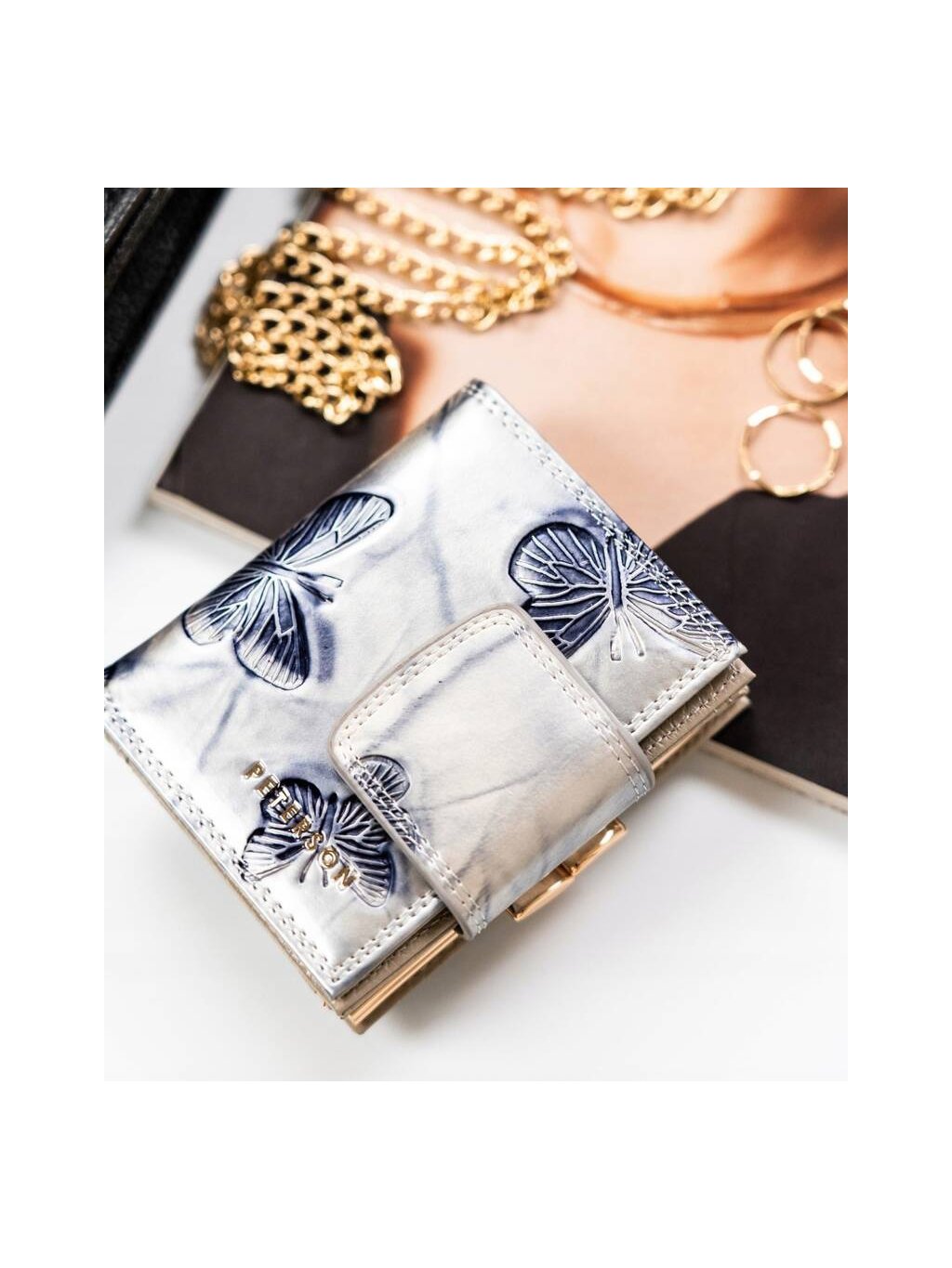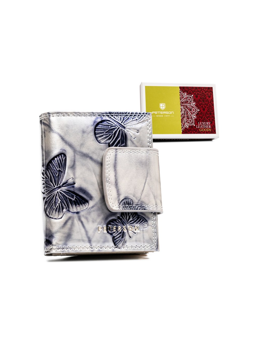 PETERSON ŠEDÁ PENĚŽENKA S MOTÝLKY Y578