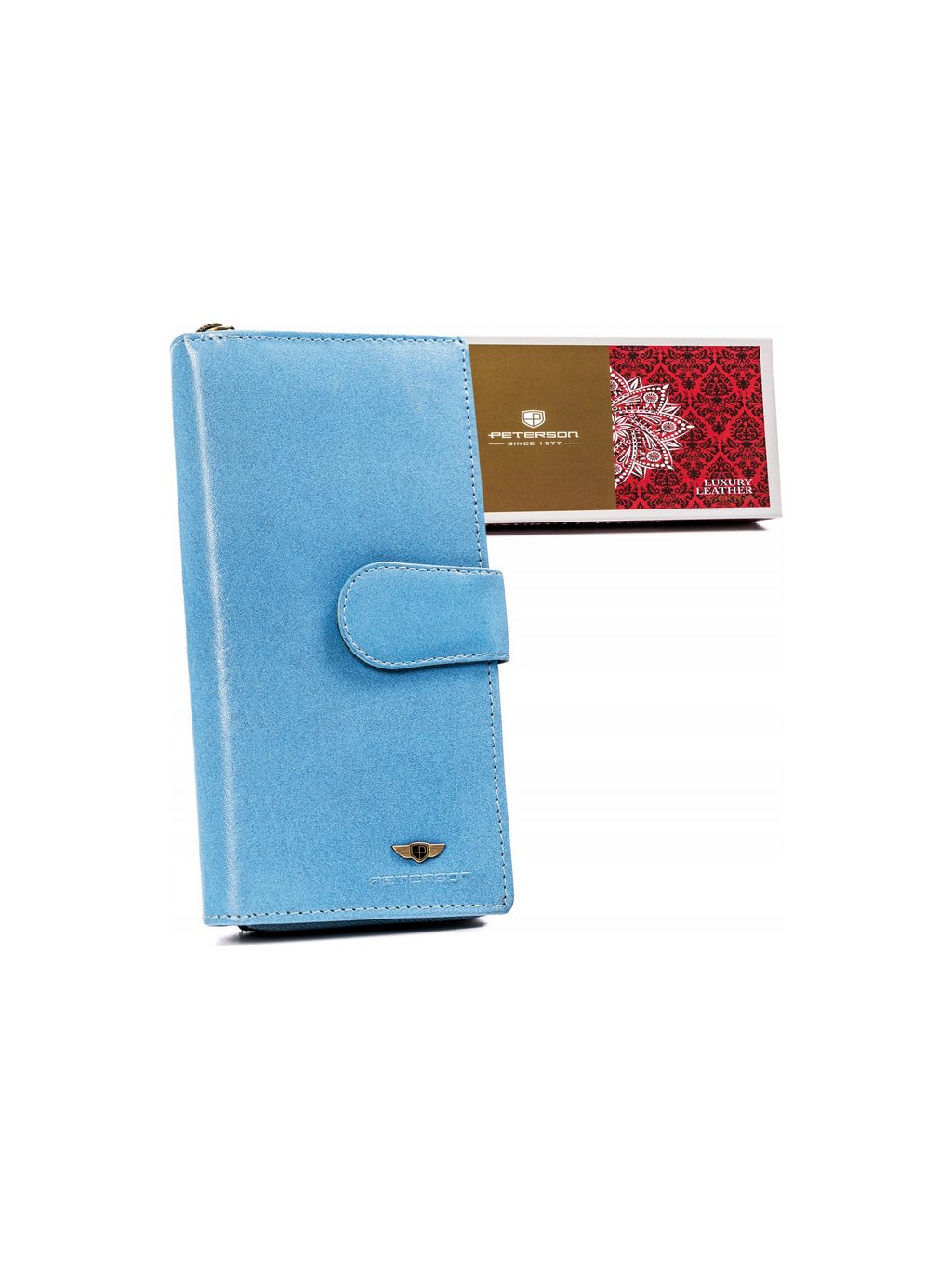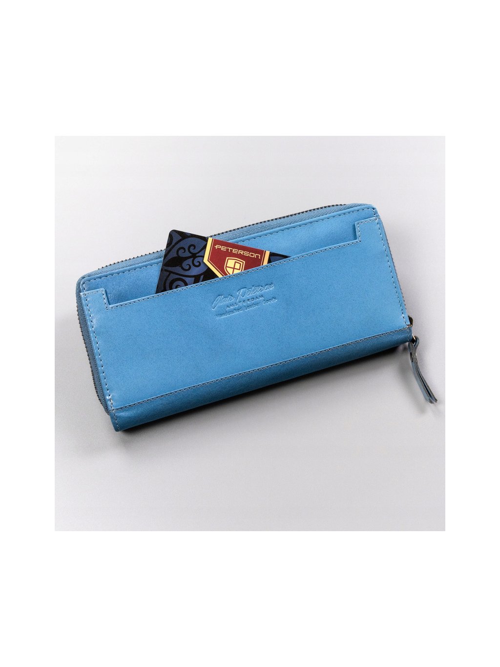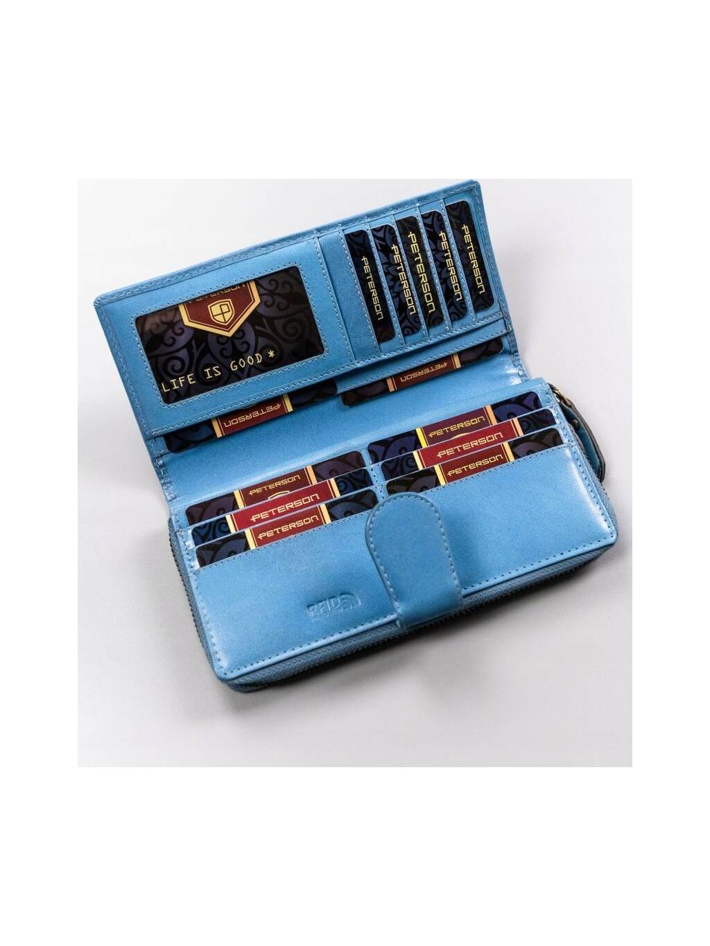 PETERSON SVĚTLE MODRÁ VELKÁ DÁMSKÁ PENĚŽENKA NA ZIP A PATENTKU Y425