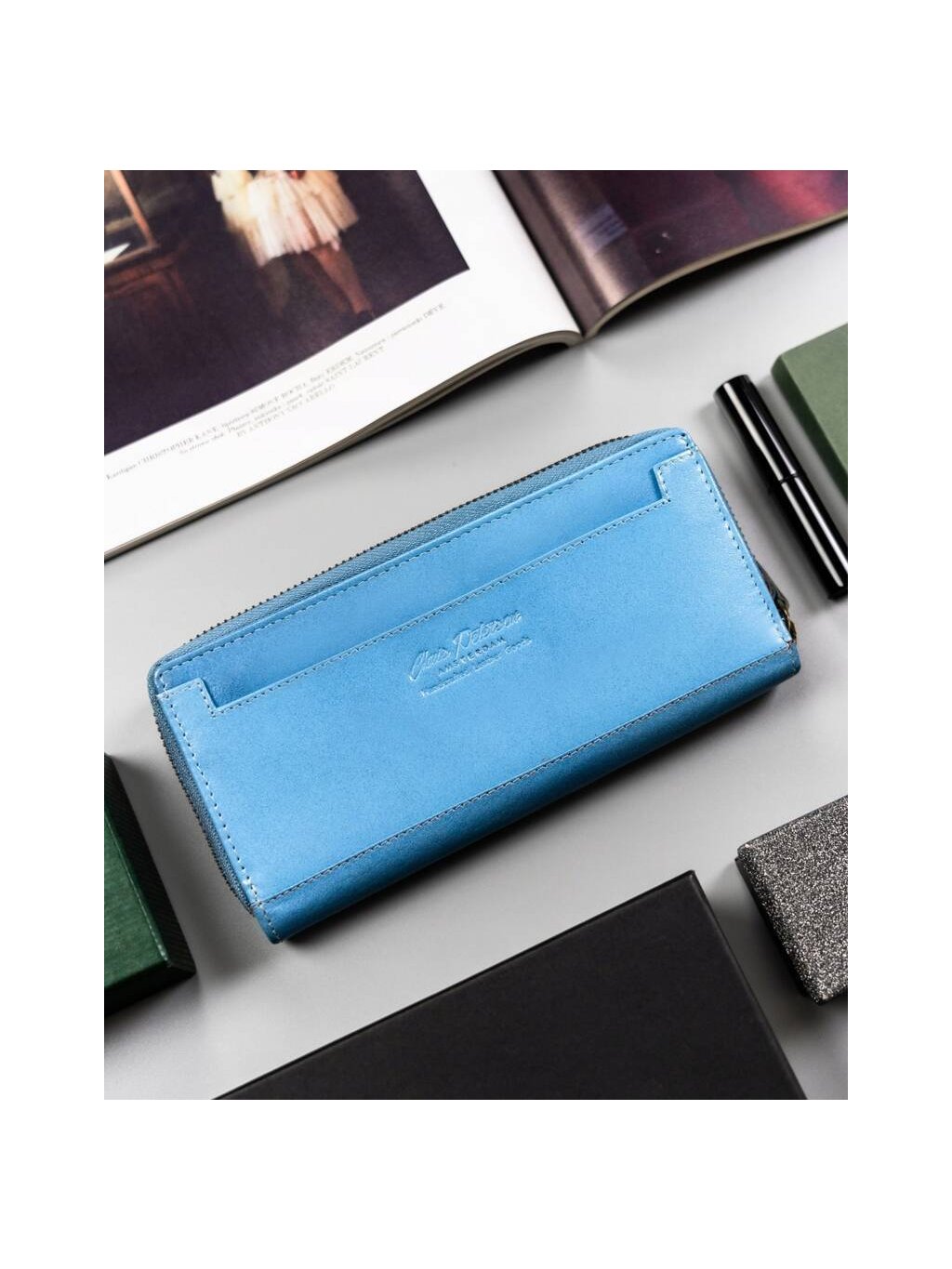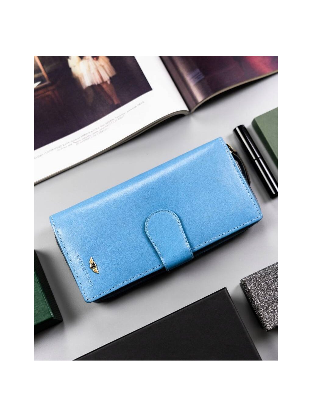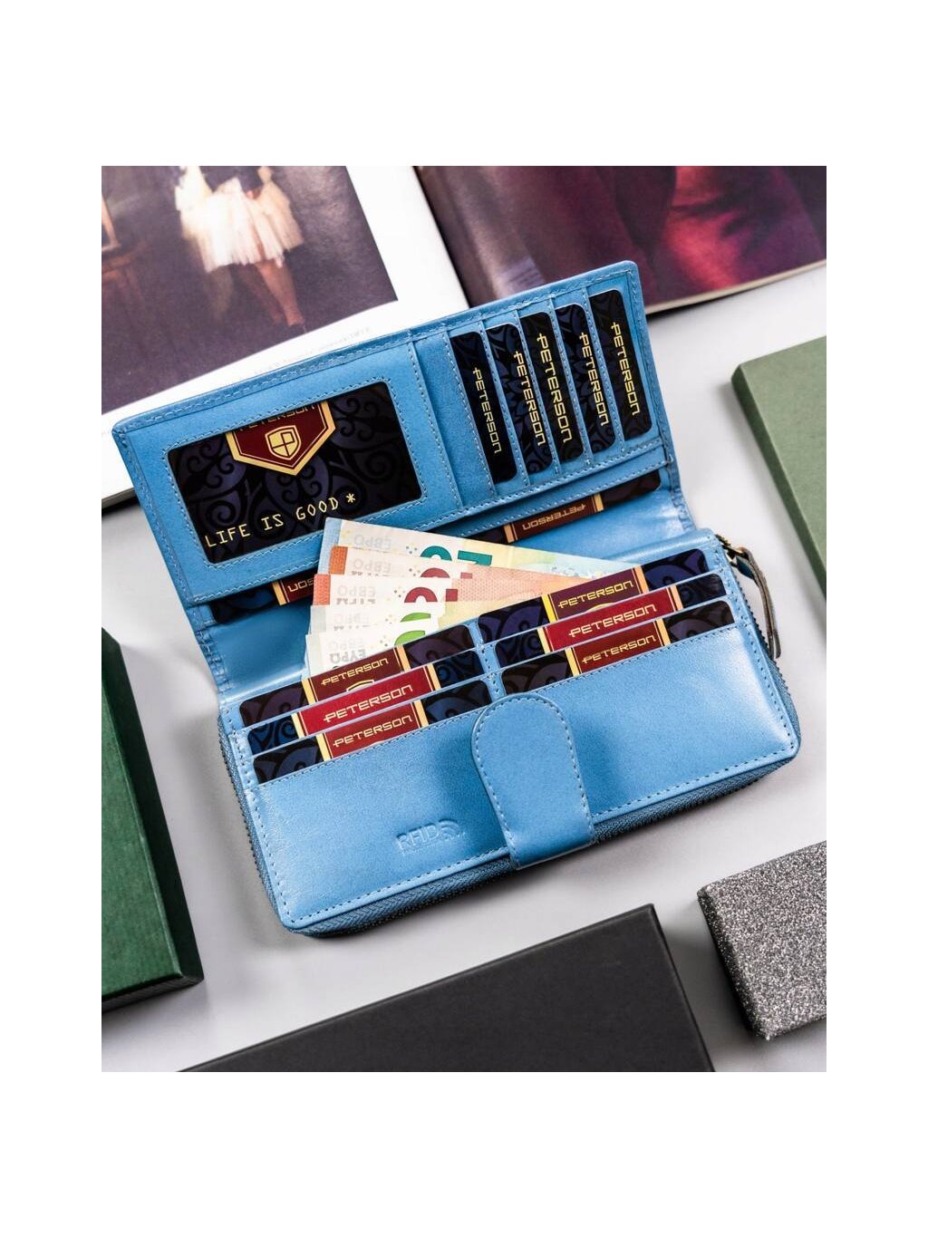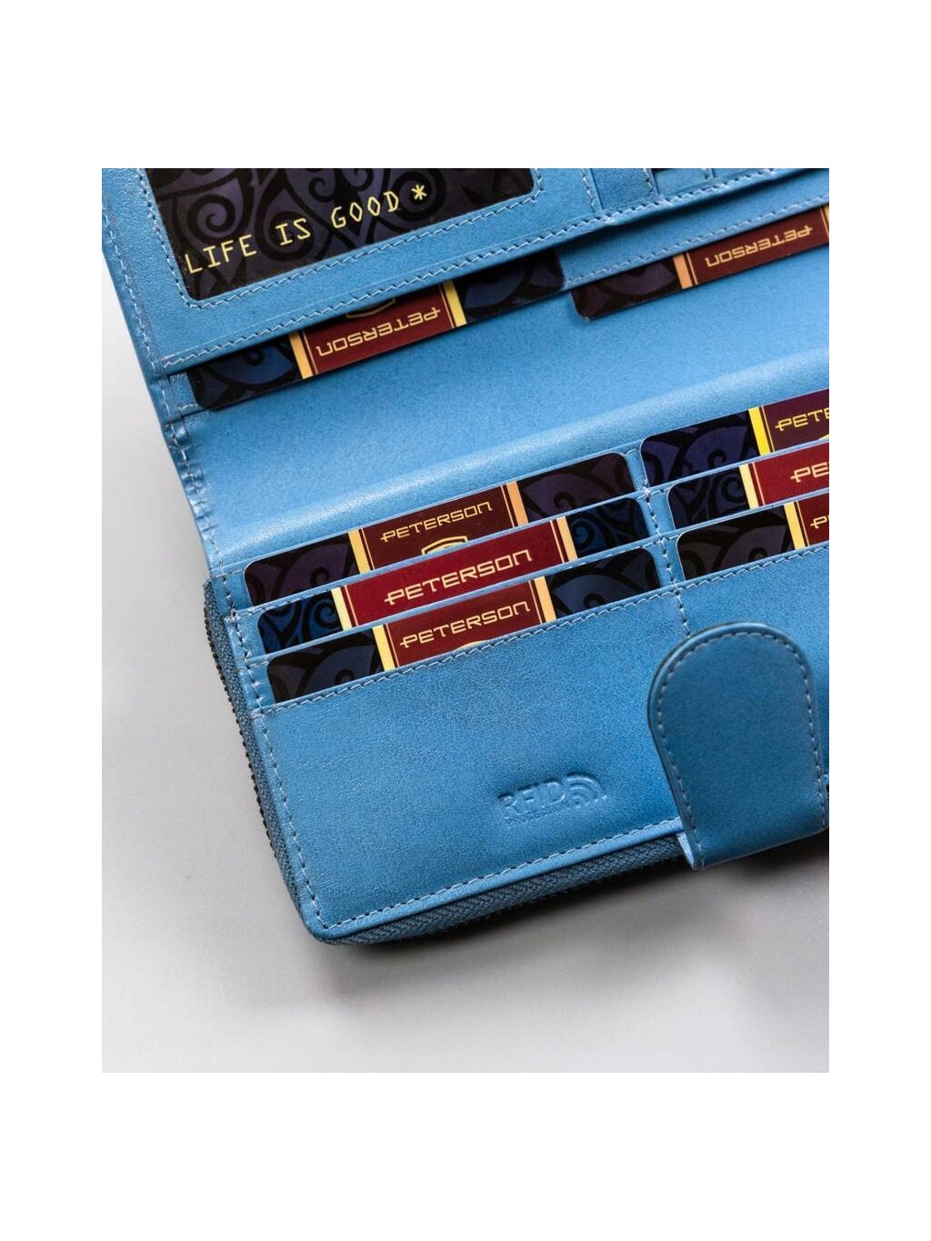 PETERSON SVĚTLE MODRÁ VELKÁ DÁMSKÁ PENĚŽENKA NA ZIP A PATENTKU Y425