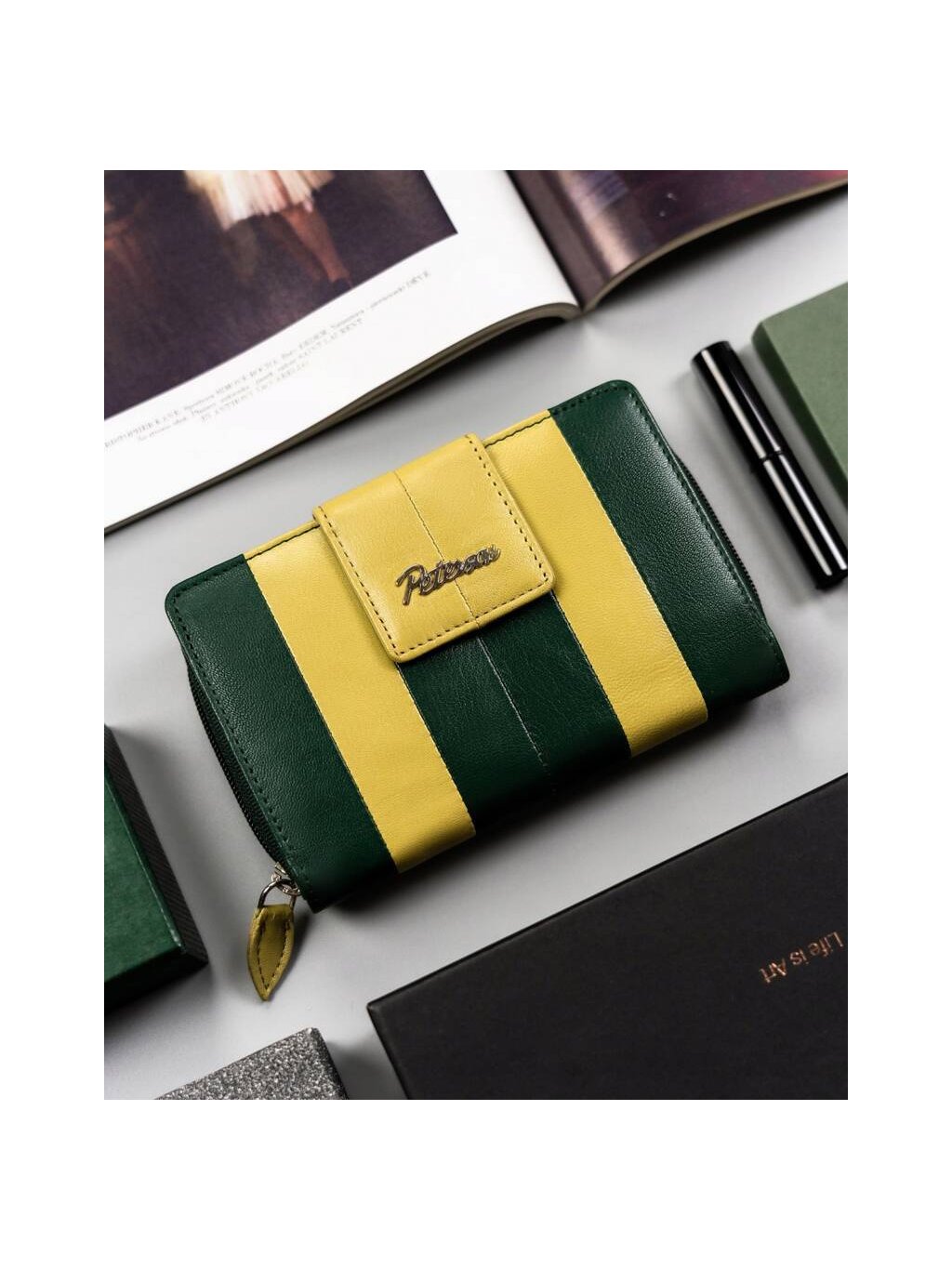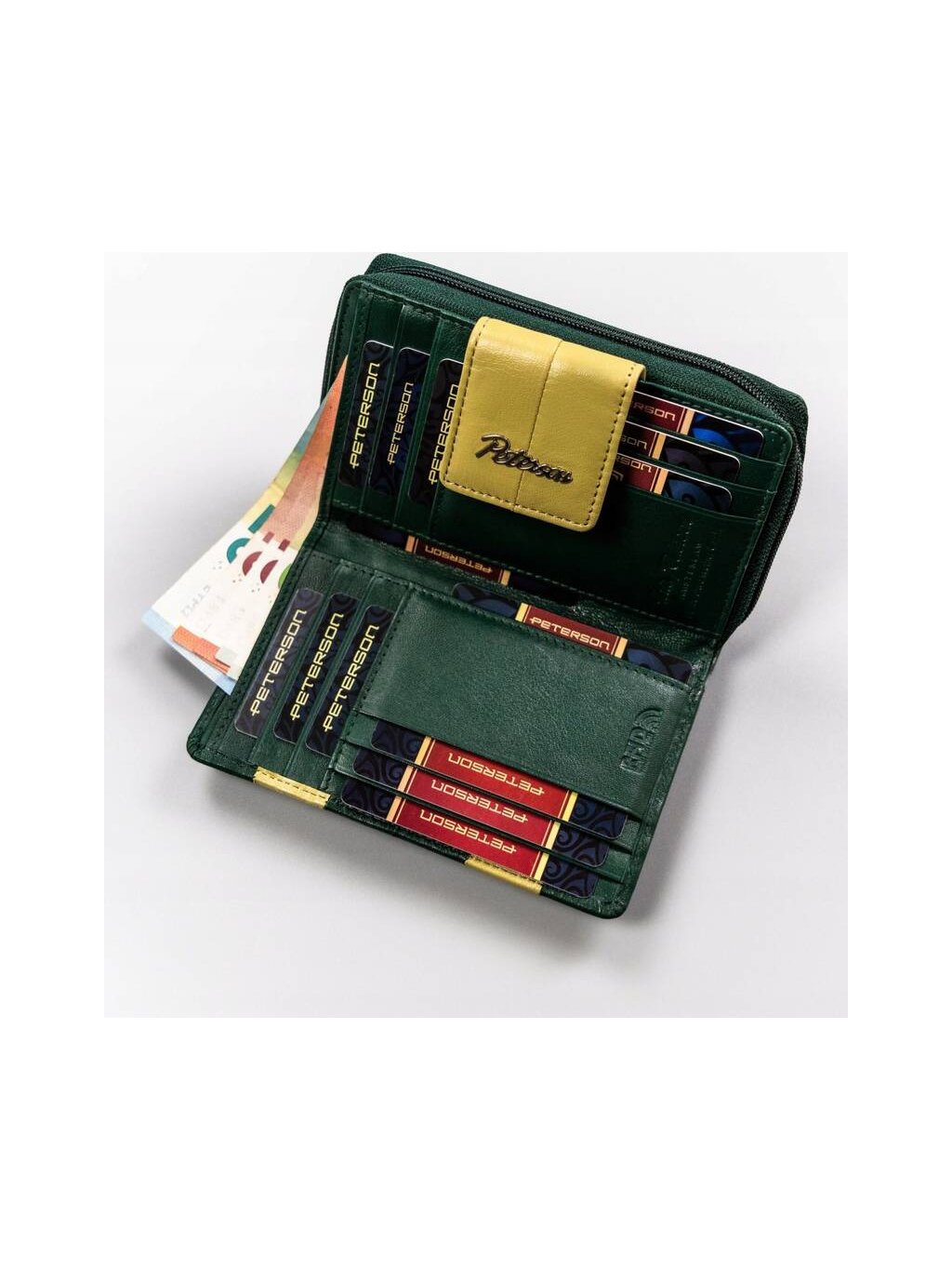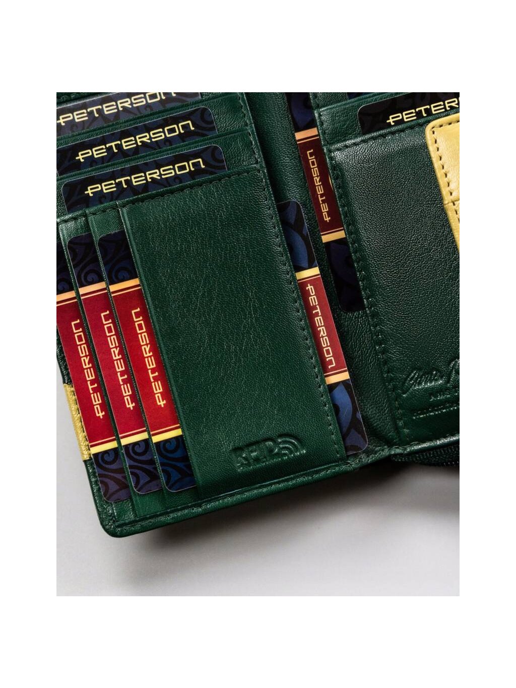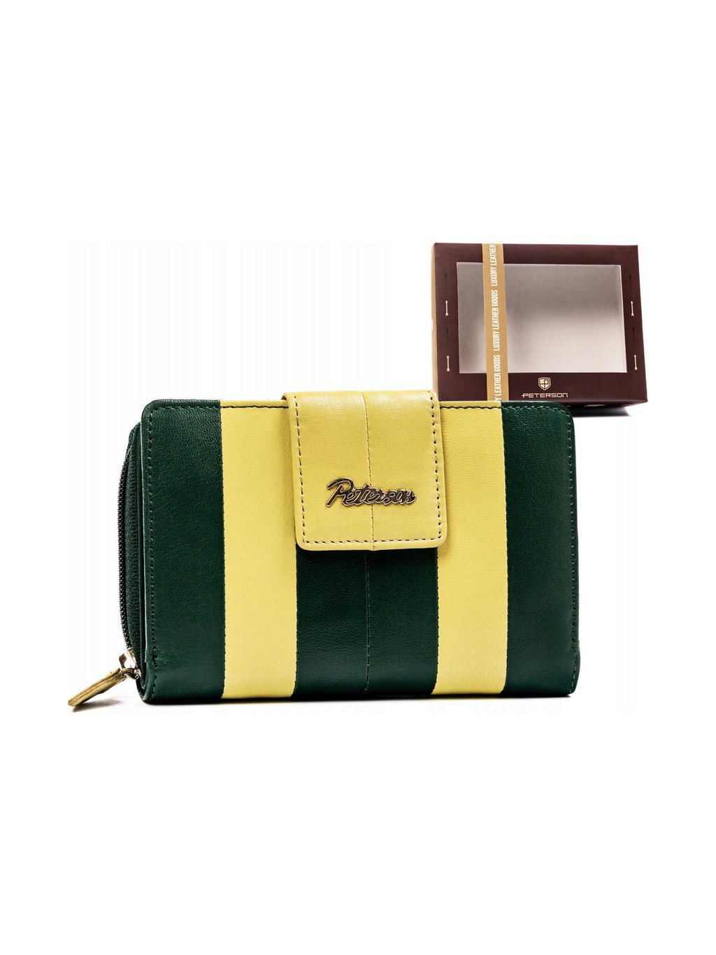 PETERSON TMAVĚ ZELENO - ŽLUTÁ STŘEDNÍ KOŽENÁ PENĚŽENKA Y441