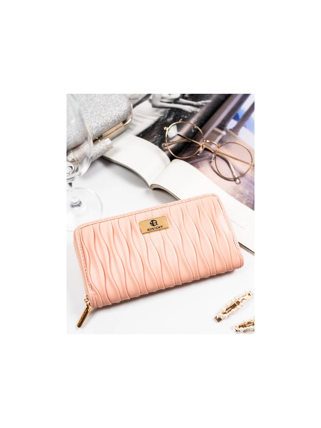 PUDROVÁ DÁMSKÁ PENĚŽENKA S MAČKANÝM EFEKTEM ROVICKY V282