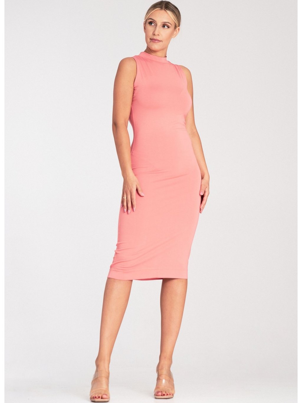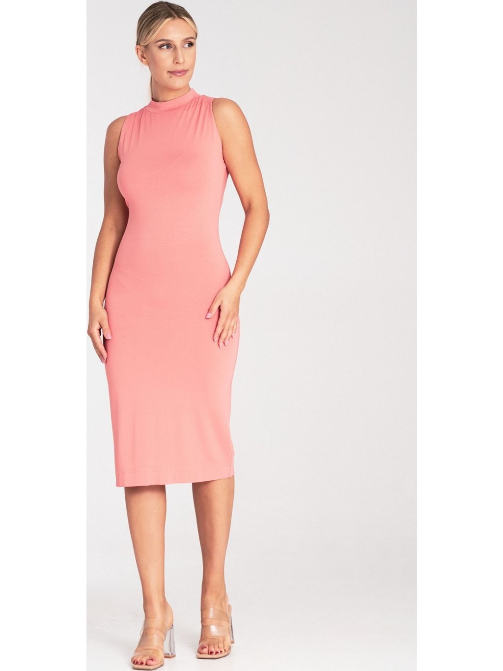 PUDROVÉ VYPASOVANÉ VISKÓZOVÉ ŠATY BEZ RUKÁVŮ