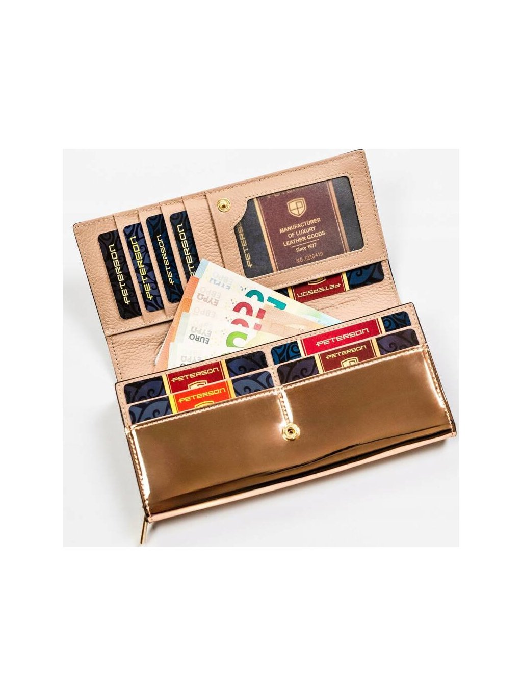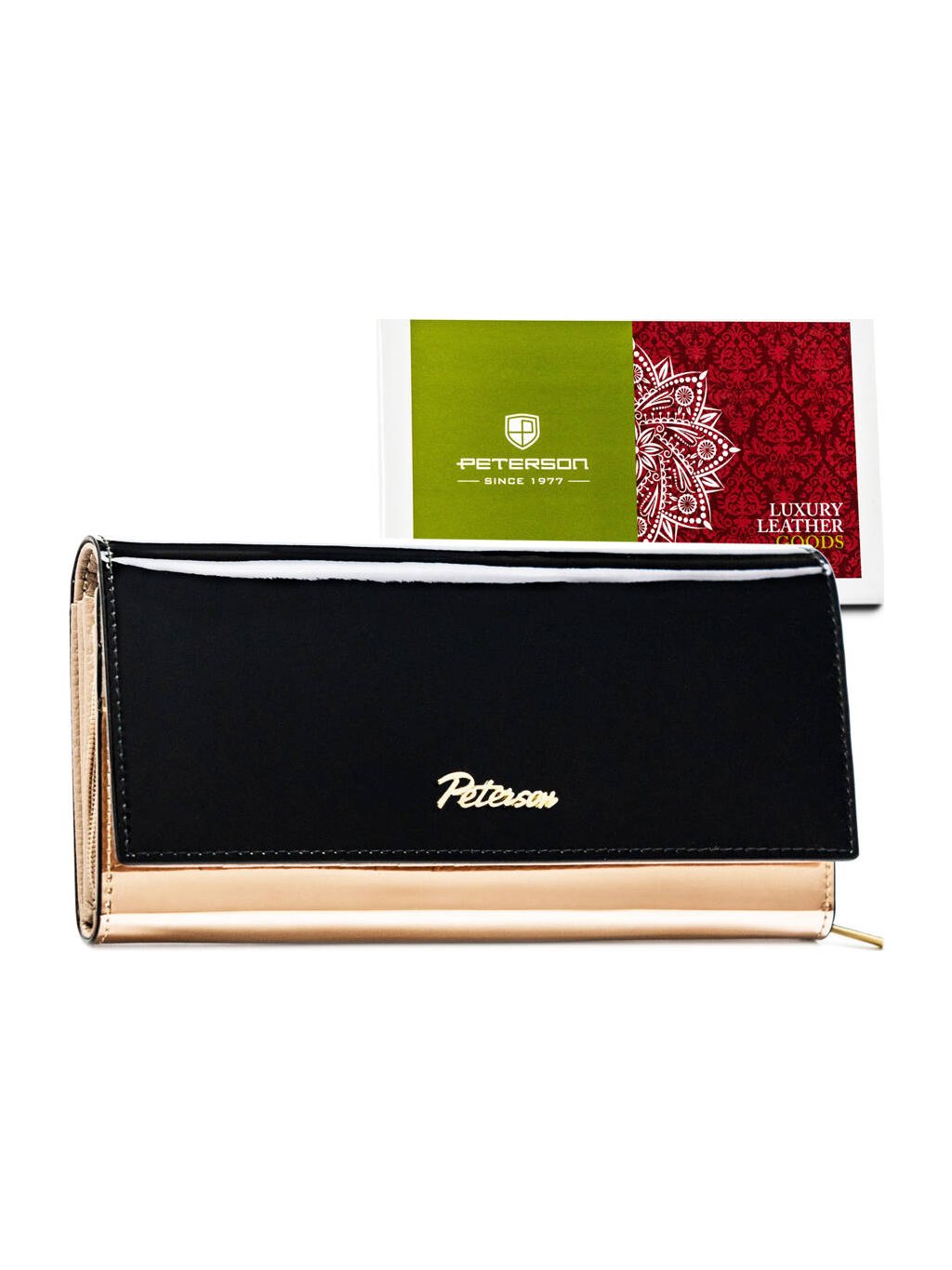 ROSEGOLD-ČERNÁ DÁMSKÁ PENĚŽENKA SE ZAPÍNÁNÍM NA PATENTKU PETERSON Y741