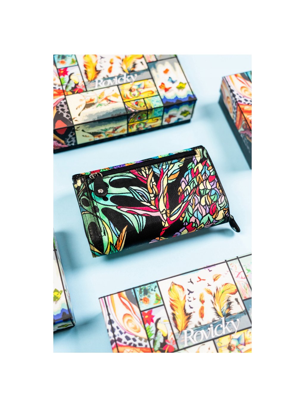 ROVICKY ČERNÁ DÁMSKÁ PENĚŽENKA S BAREVNÝM VZOREM V338