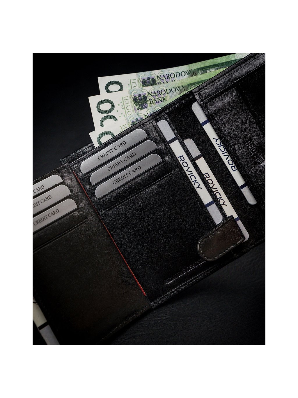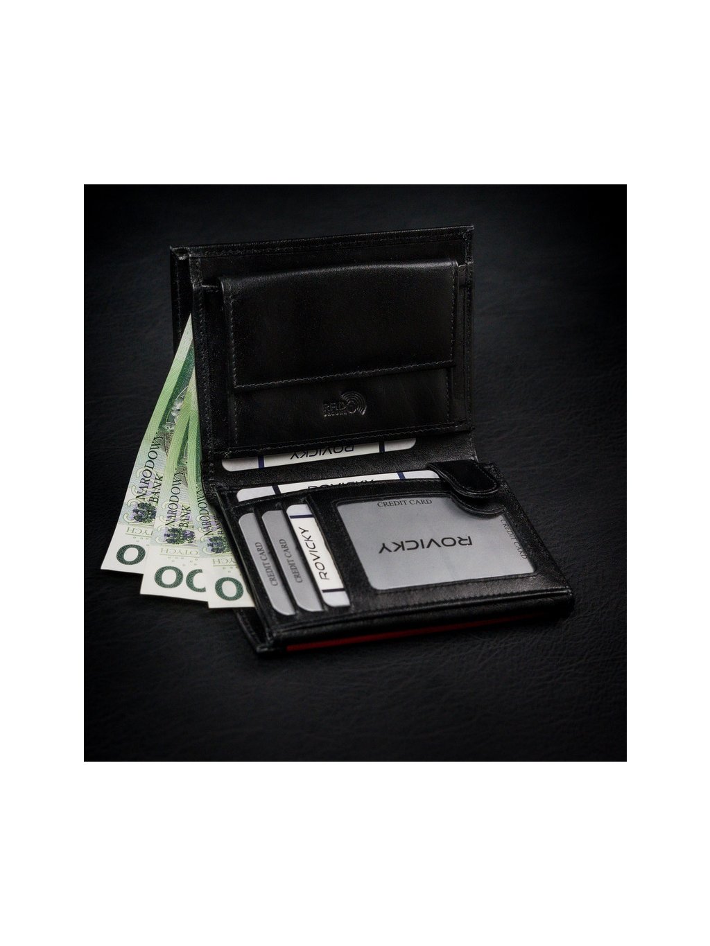ROVICKY ČERNÁ PENĚŽENKA S ČERVENOU VSADKOU L137