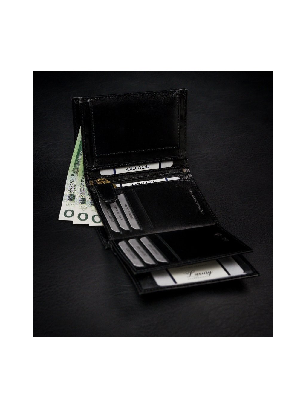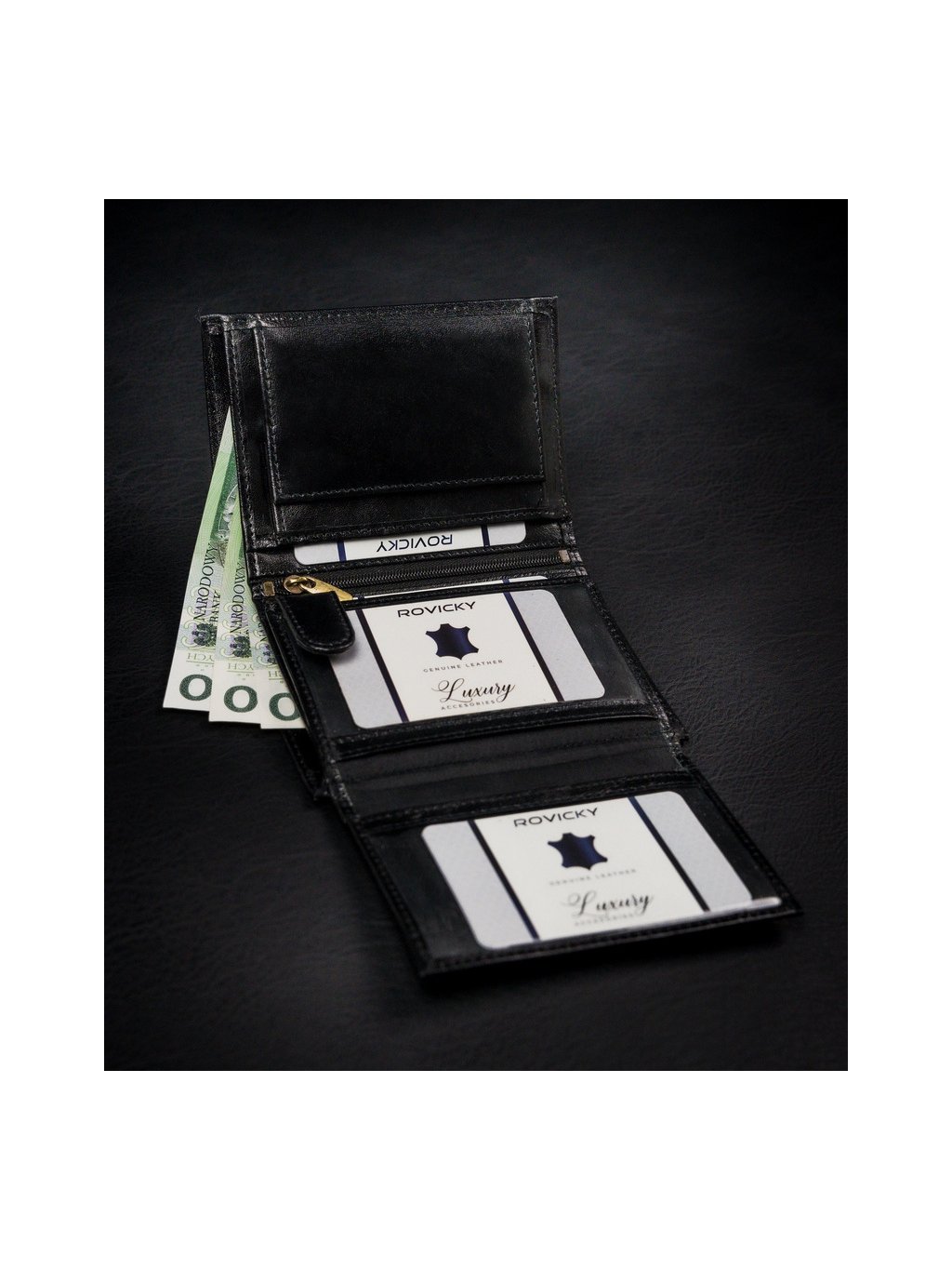 ROVICKY ČERNÁ PENĚŽENKA SE VSADKOU L118