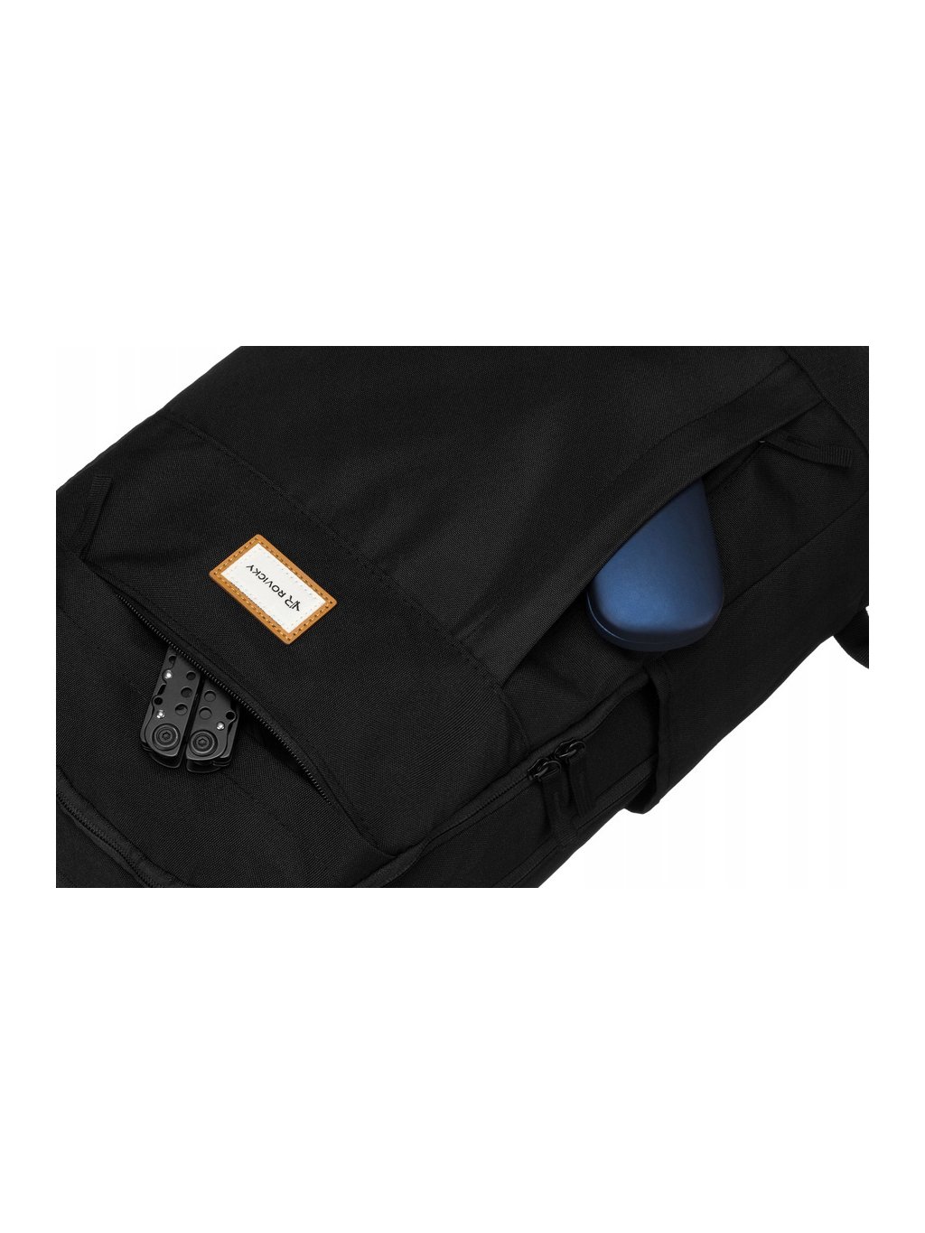 - 3 vnější kapsy (jedna uzavíratelná na zip na přední straně a dvě na boku)