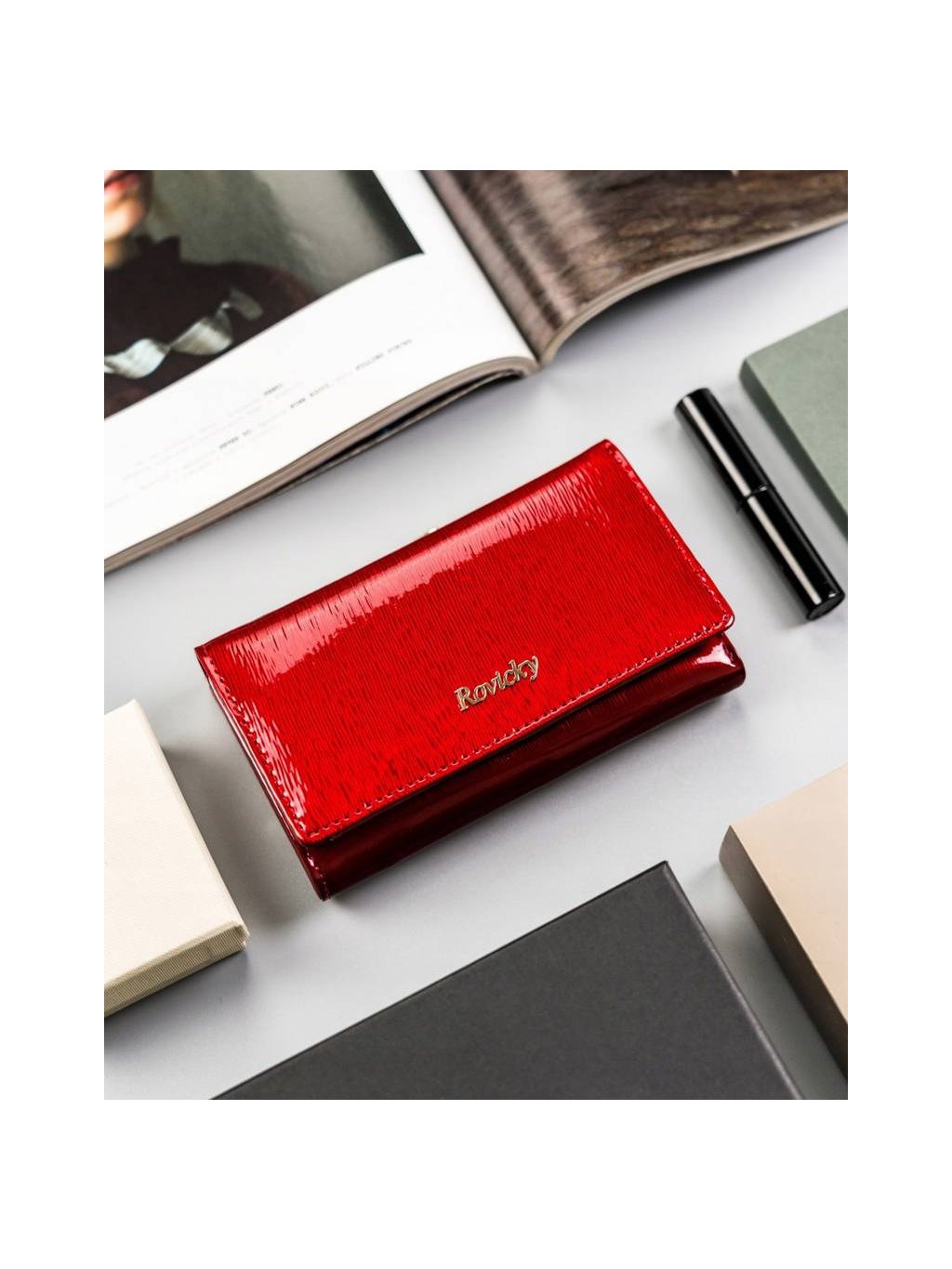 ROVICKY ČERVENÁ DÁMSKÁ KOŽENÁ LAKOVANÁ PENĚŽENKA V128