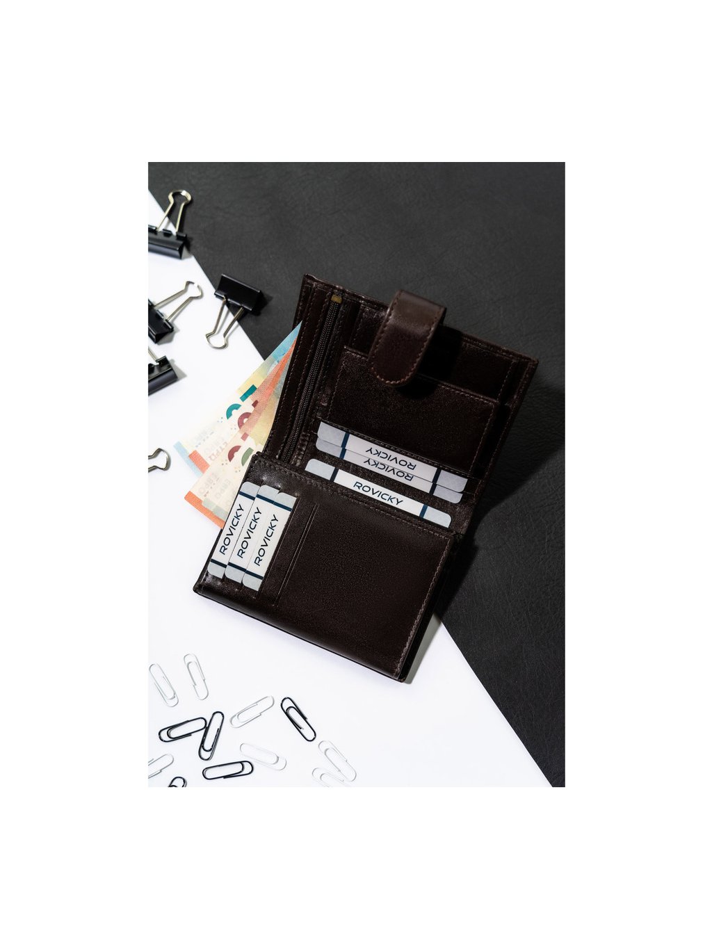 ROVICKY HNĚDÁ PÁNSKÁ KOŽENÁ PENĚŽENKA SE ZAPÍNÁNÍM V314