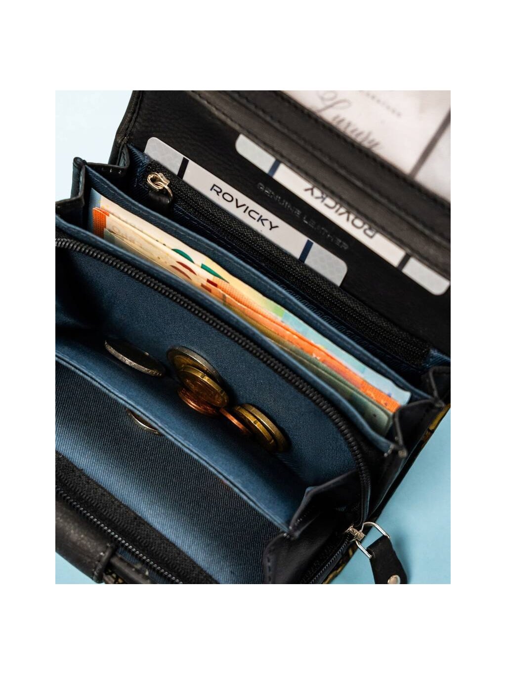 • až 8 přihrádek na větší dokumenty, 2 z nich se zapínají na zip, 1 z nich je umístěna na vnější straně peněženky