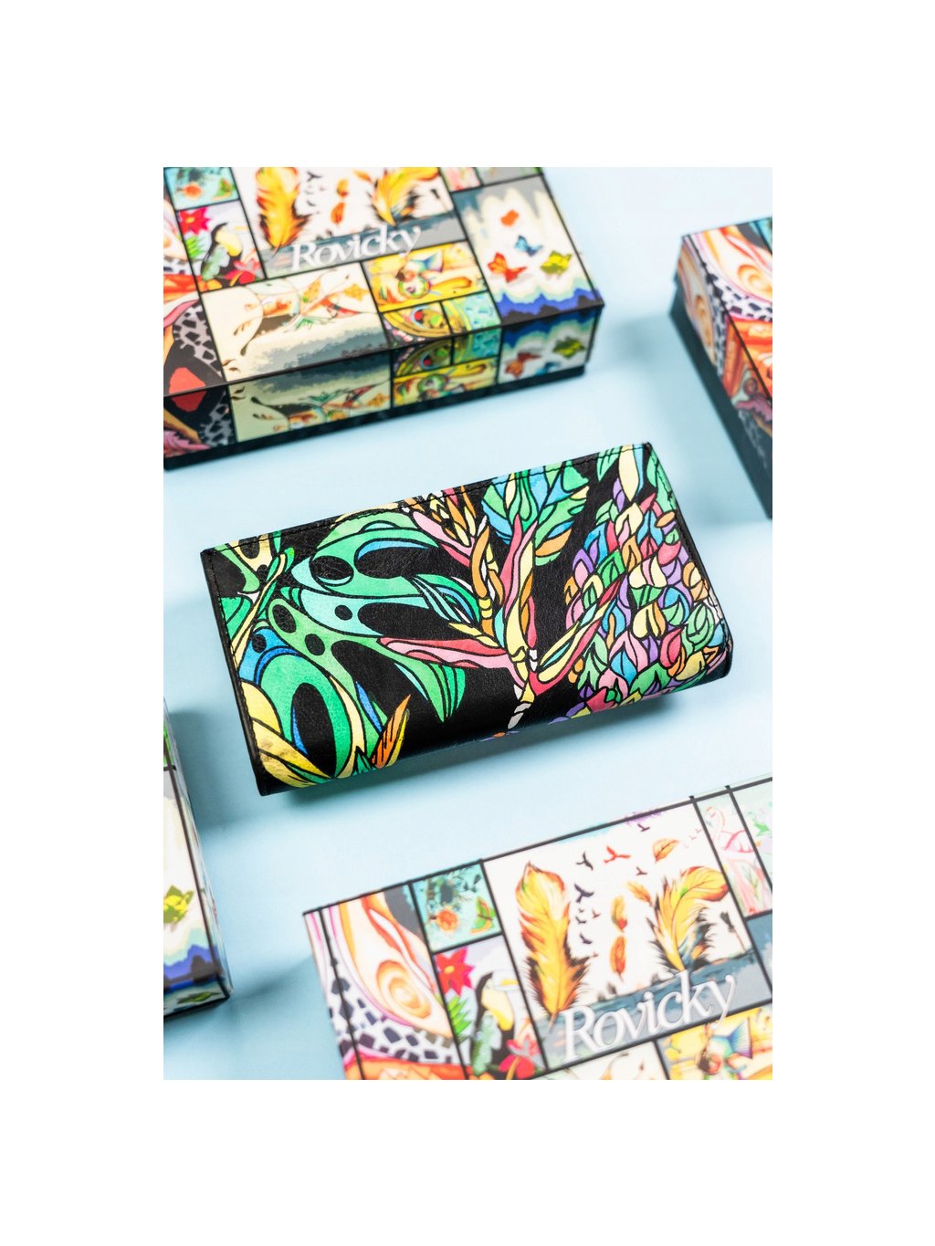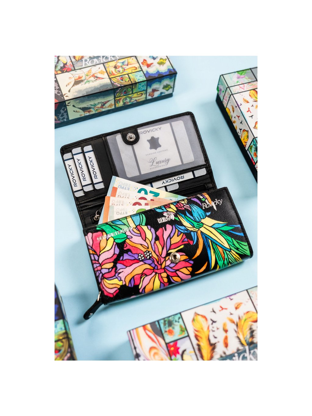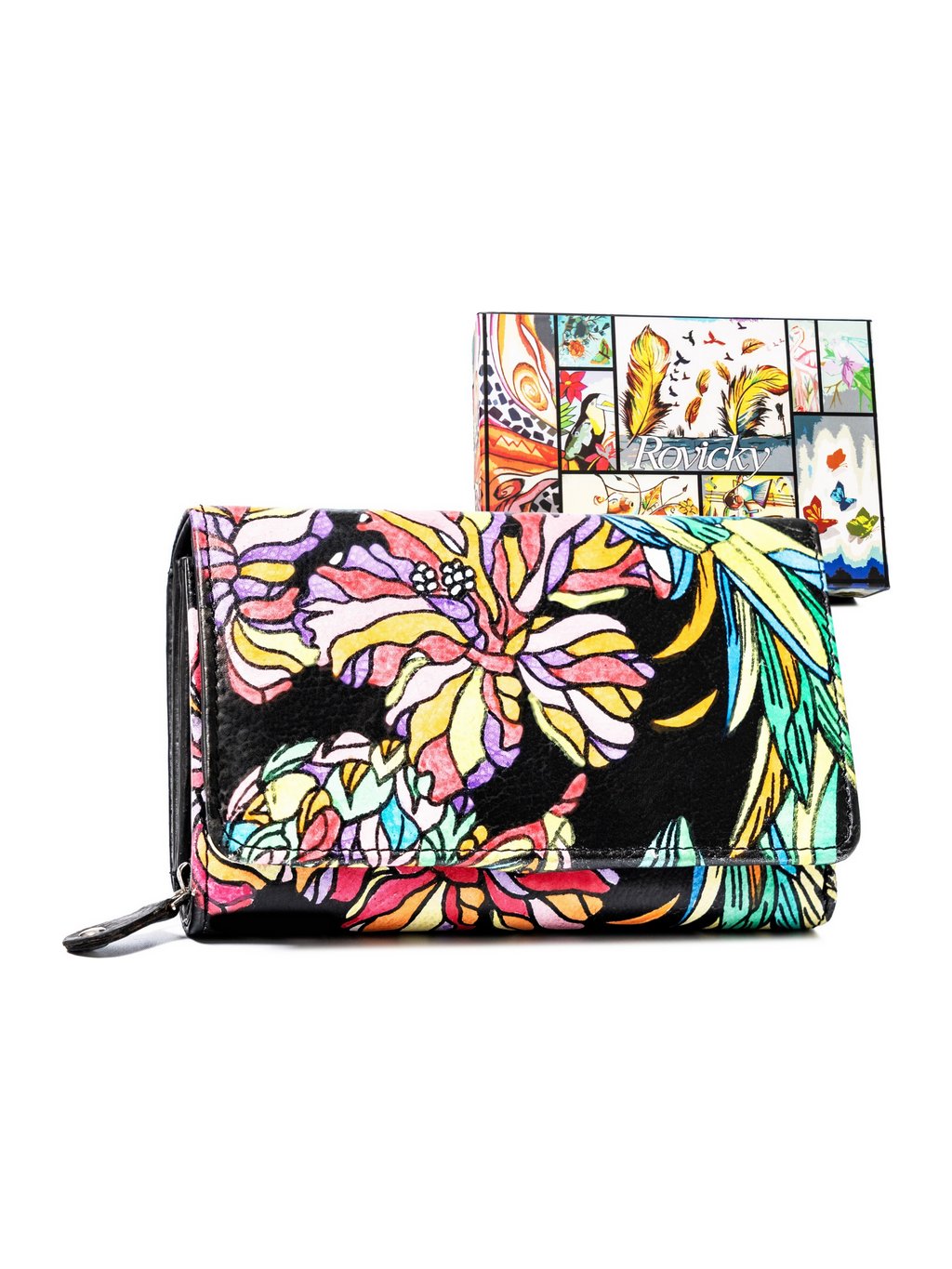 ROVICKY STŘEDNÍ KOŽENÁ PENĚŽENKA SE VZORY V340