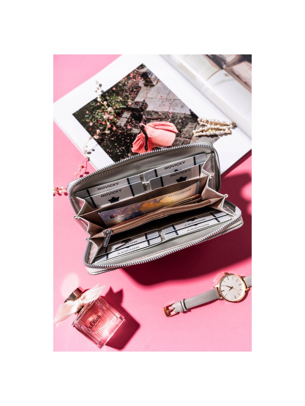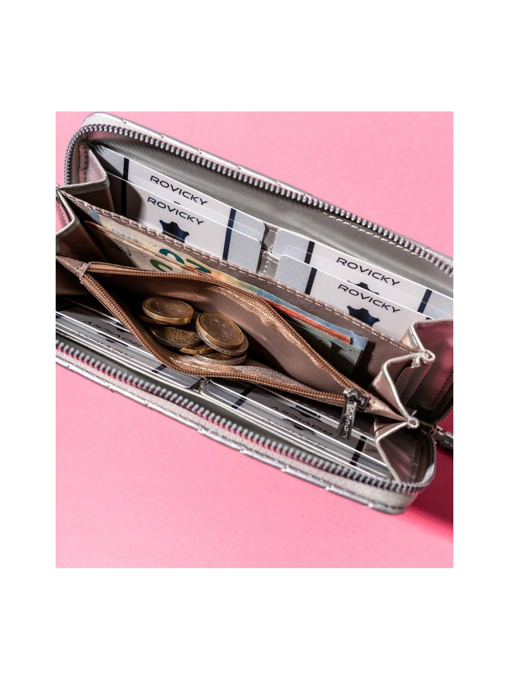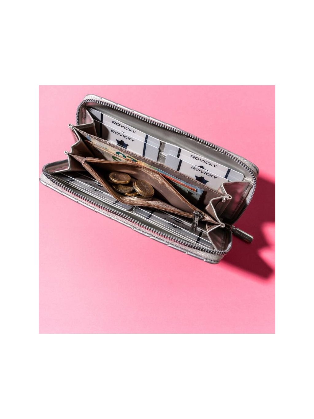 ROVICKY STŘÍBRNÁ ELEGANTNÍ PENĚŽENKA SE ZAPÍNÁNÍM NA ZIP V403