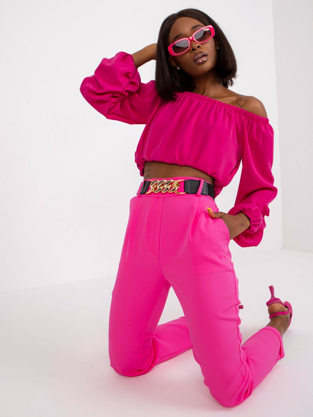 RŮŽOVÉ KALHOTY S VYSOKÝM PASEM A OPASKEM