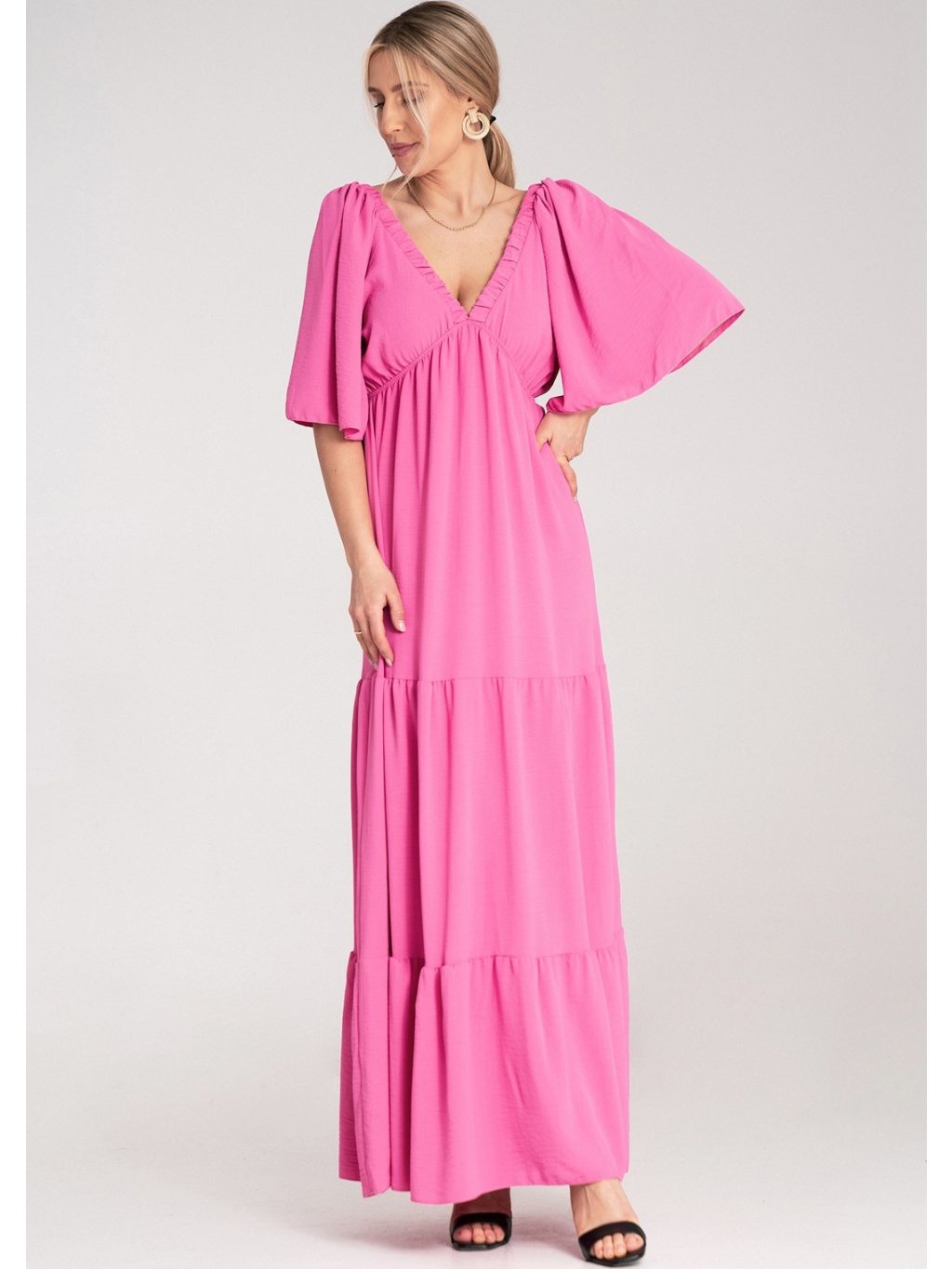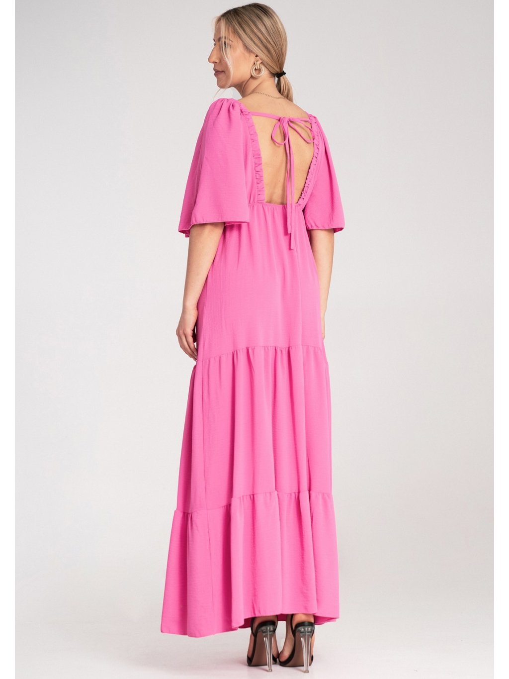 RŮŽOVÉ MAXI ŠATY SE ZAVAZOVÁNÍM NA ZÁDECH