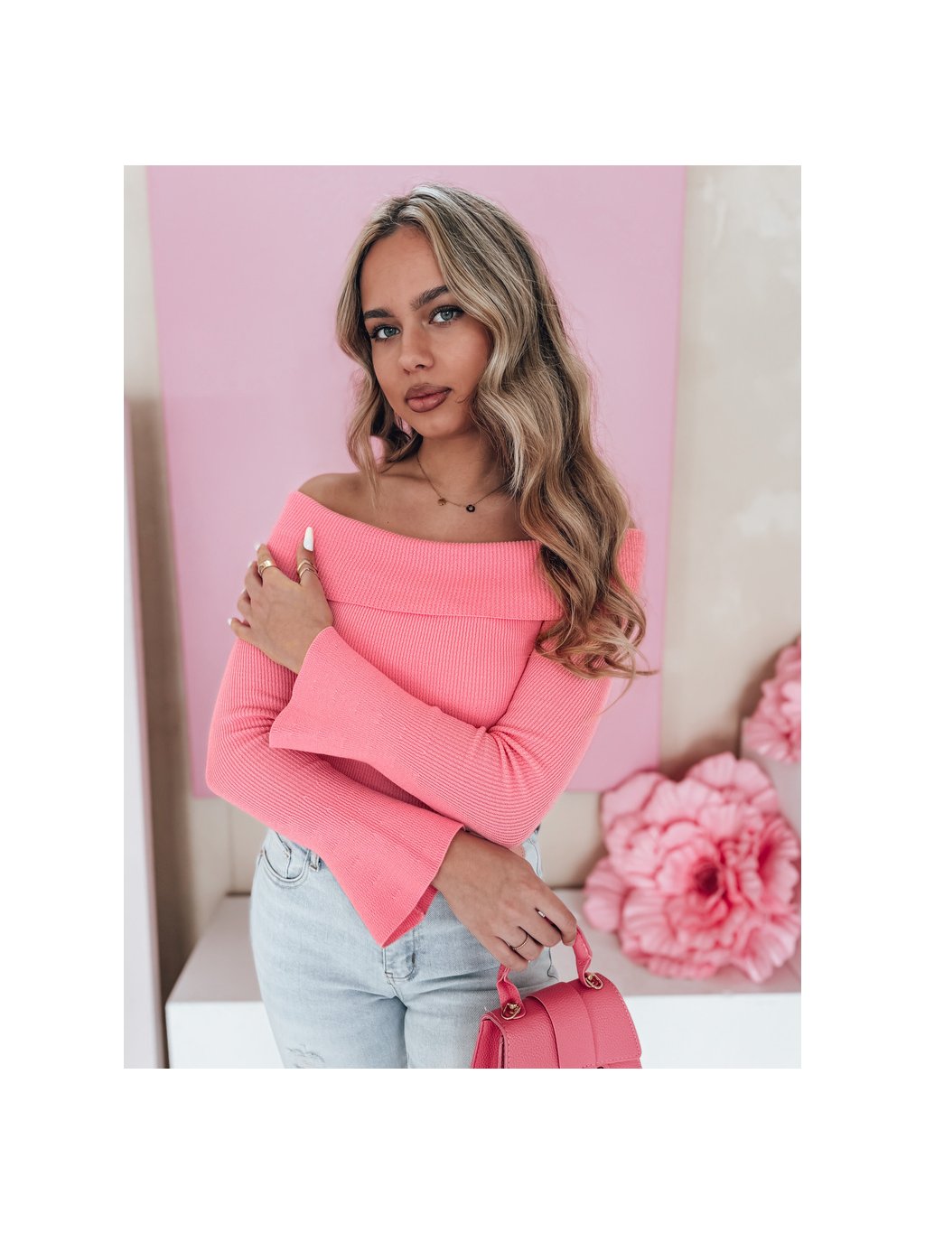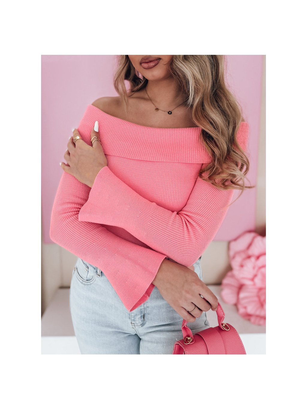 RŮŽOVÝ DÁMSKÝ SVETR S ODHALENÝMI RAMENY SHOWIT