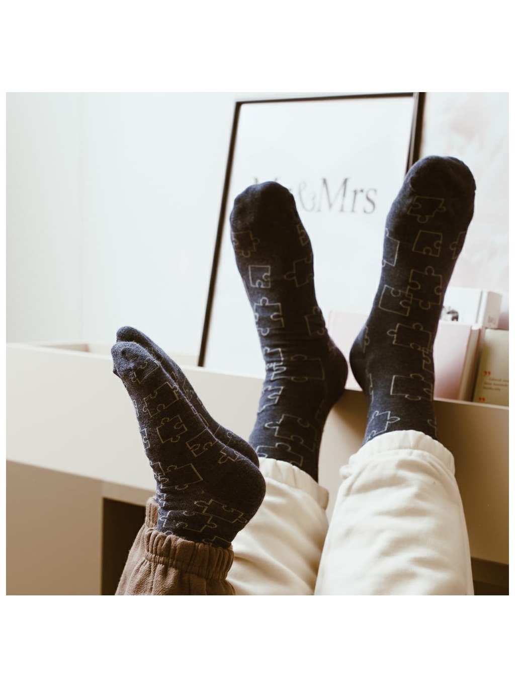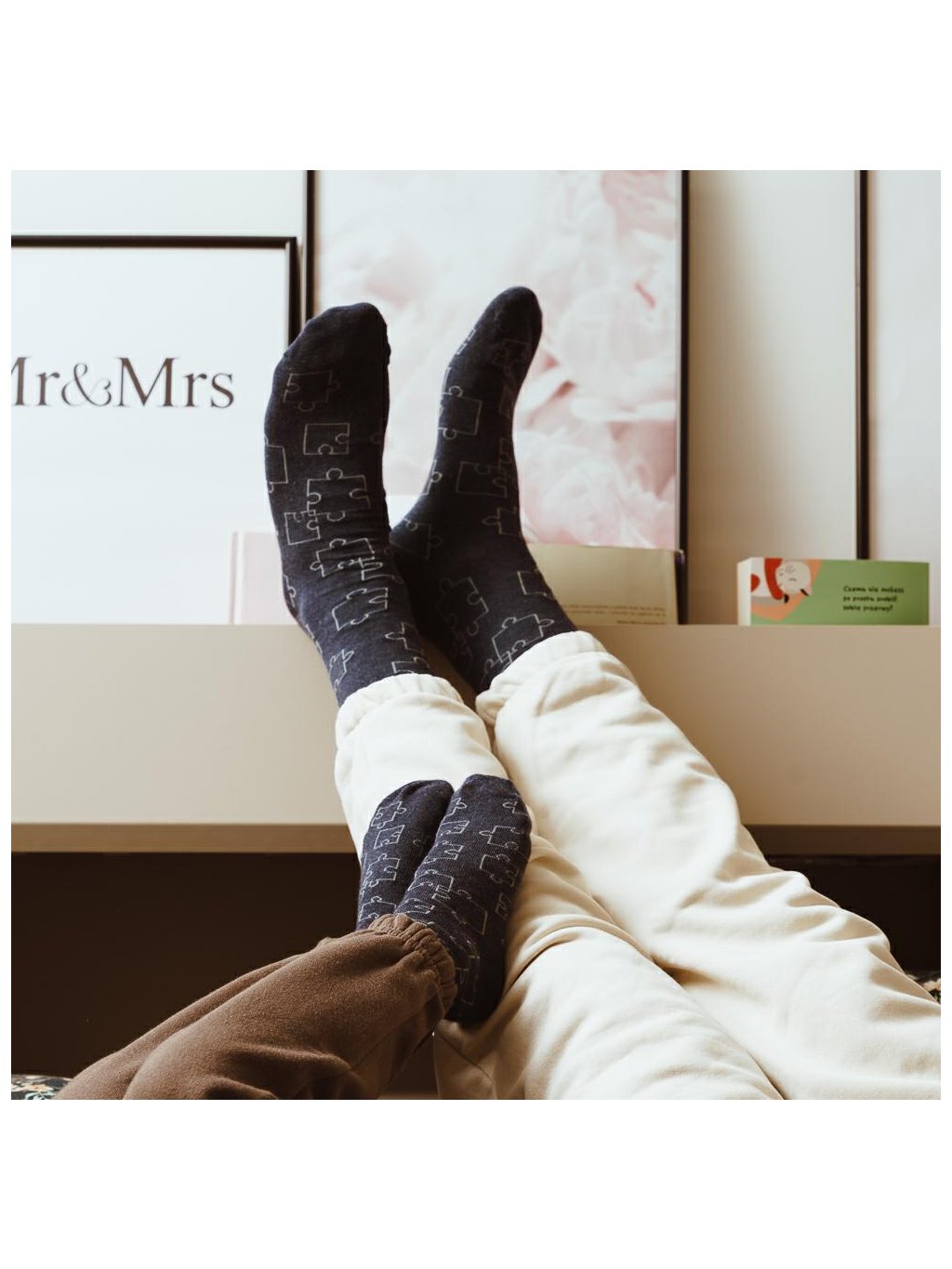 ŠEDÉ CHLAPECKÉ PONOŽKY S MOTIVEM PUZZLE ART.084