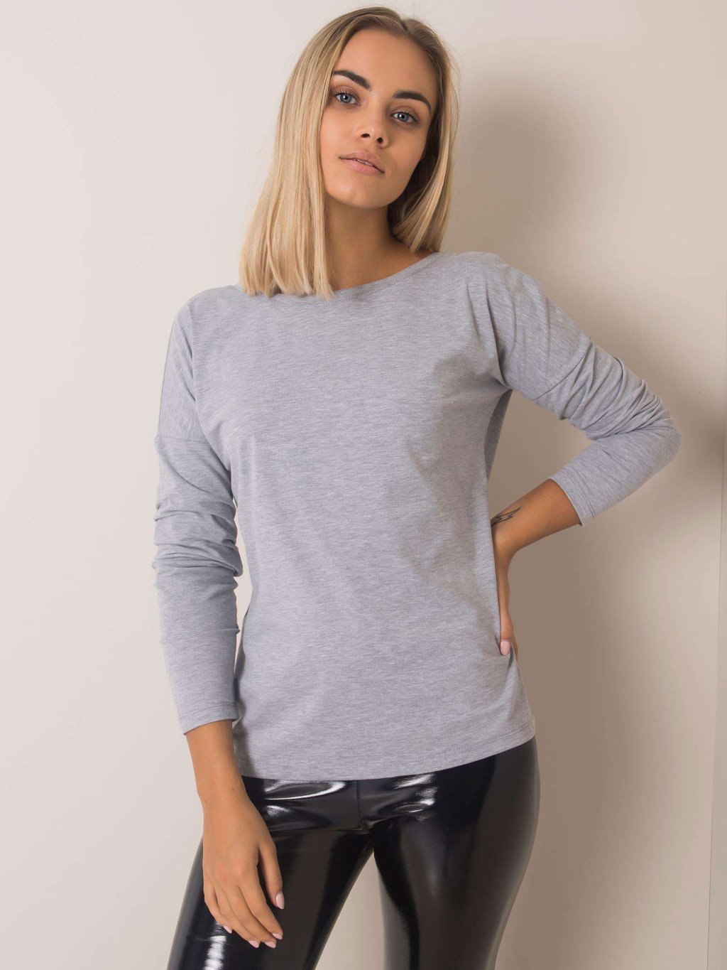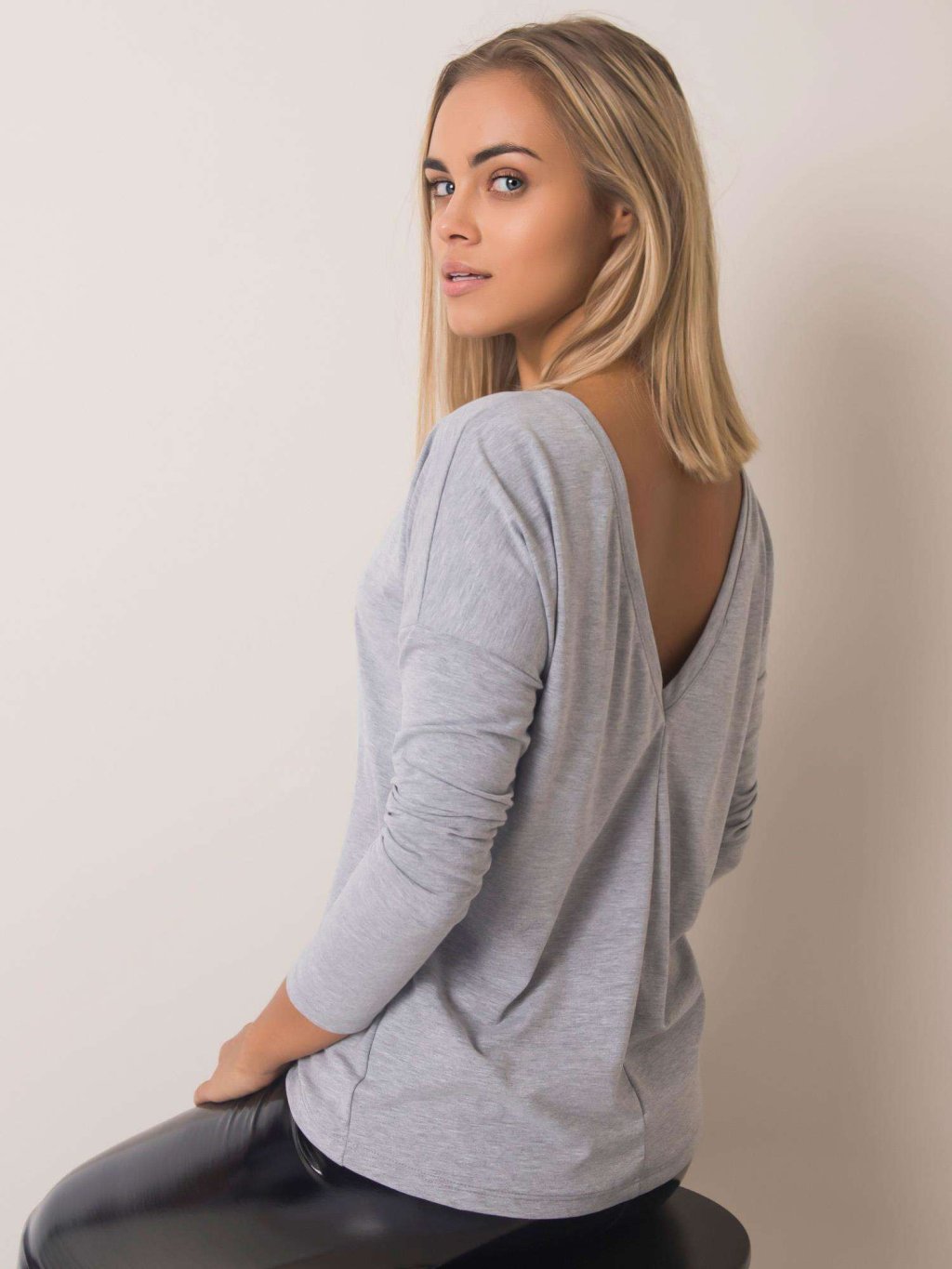 ŠEDÉ DÁMSKÉ TRIČKO S VÝSTŘIHEM NA ZÁDECH