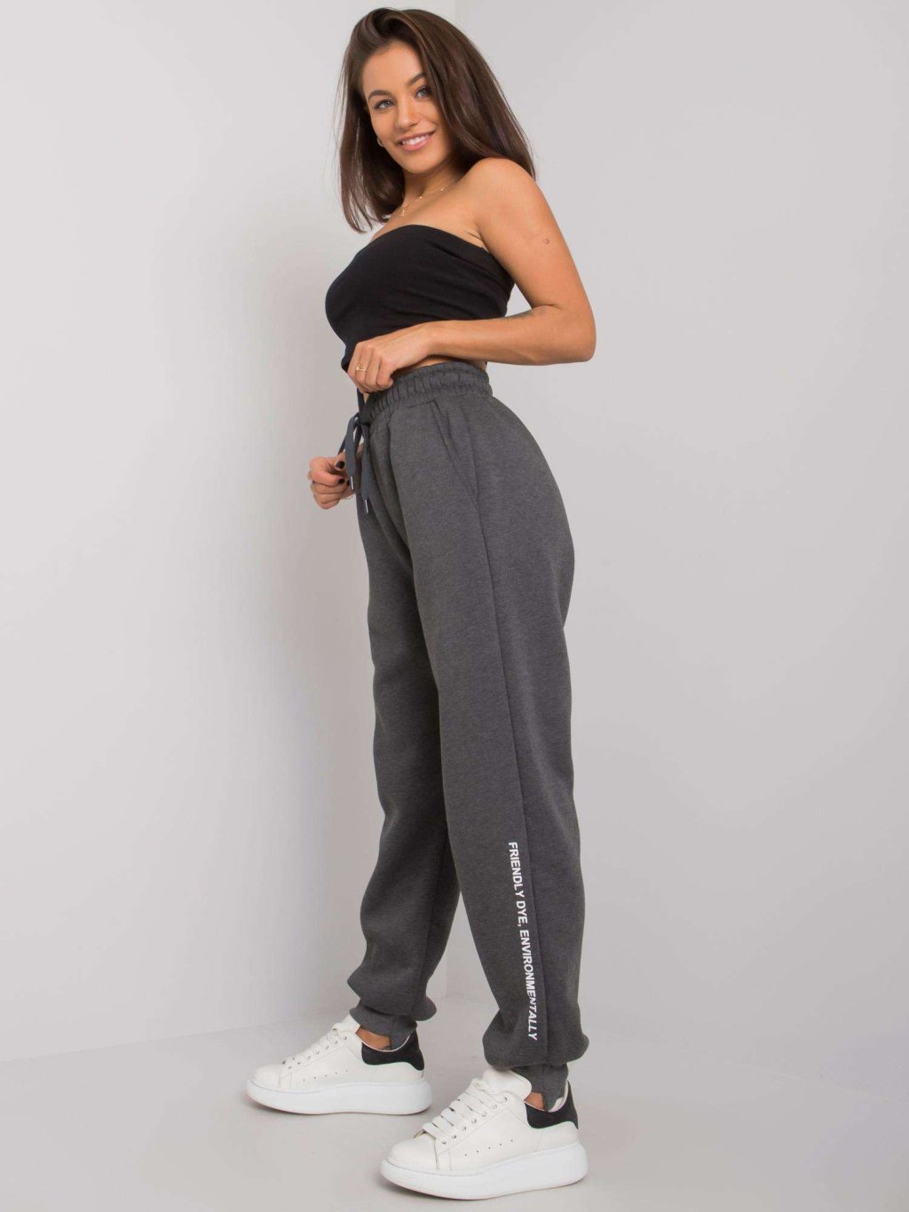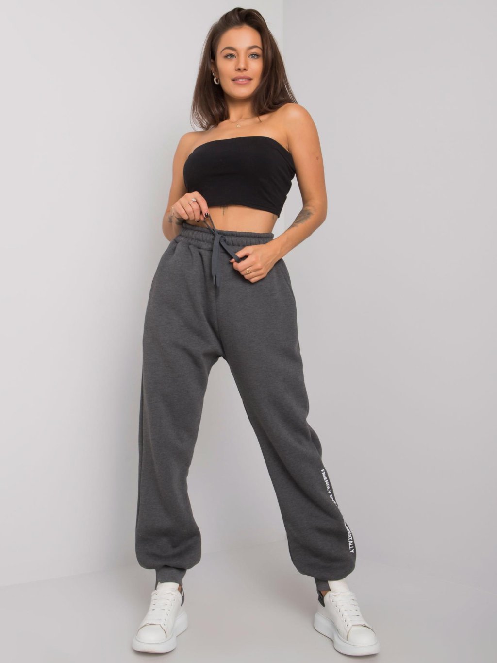 ŠEDÉ DÁMSKÉ VOLNÉ TEPLÁKY S VYSOKÝM PASEM