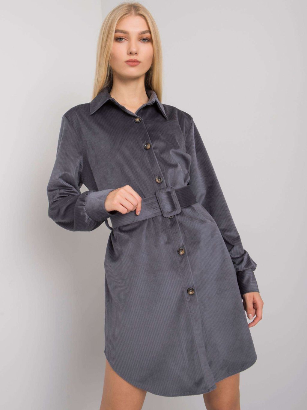 ŠEDÉ MANŠESTROVÉ ŠATY S PÁSKEM