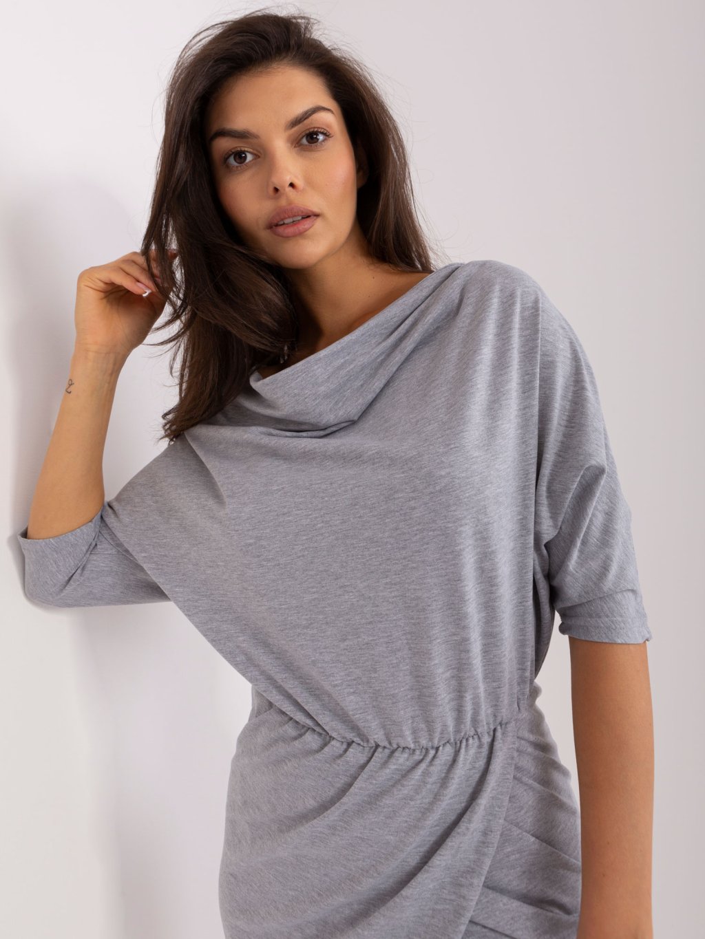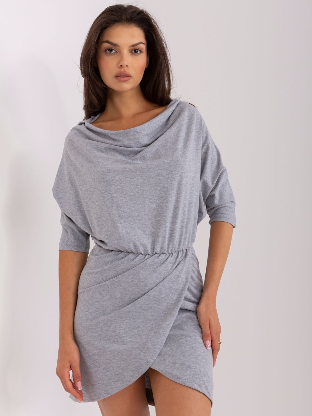 ŠEDÉ ŠATY S KAPUCÍ A 3/4 RUKÁVY