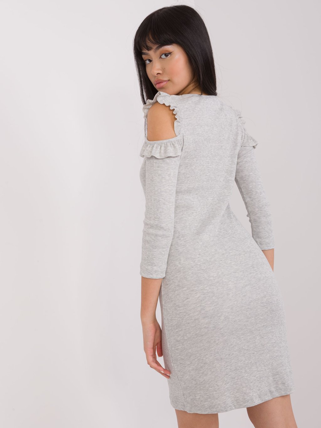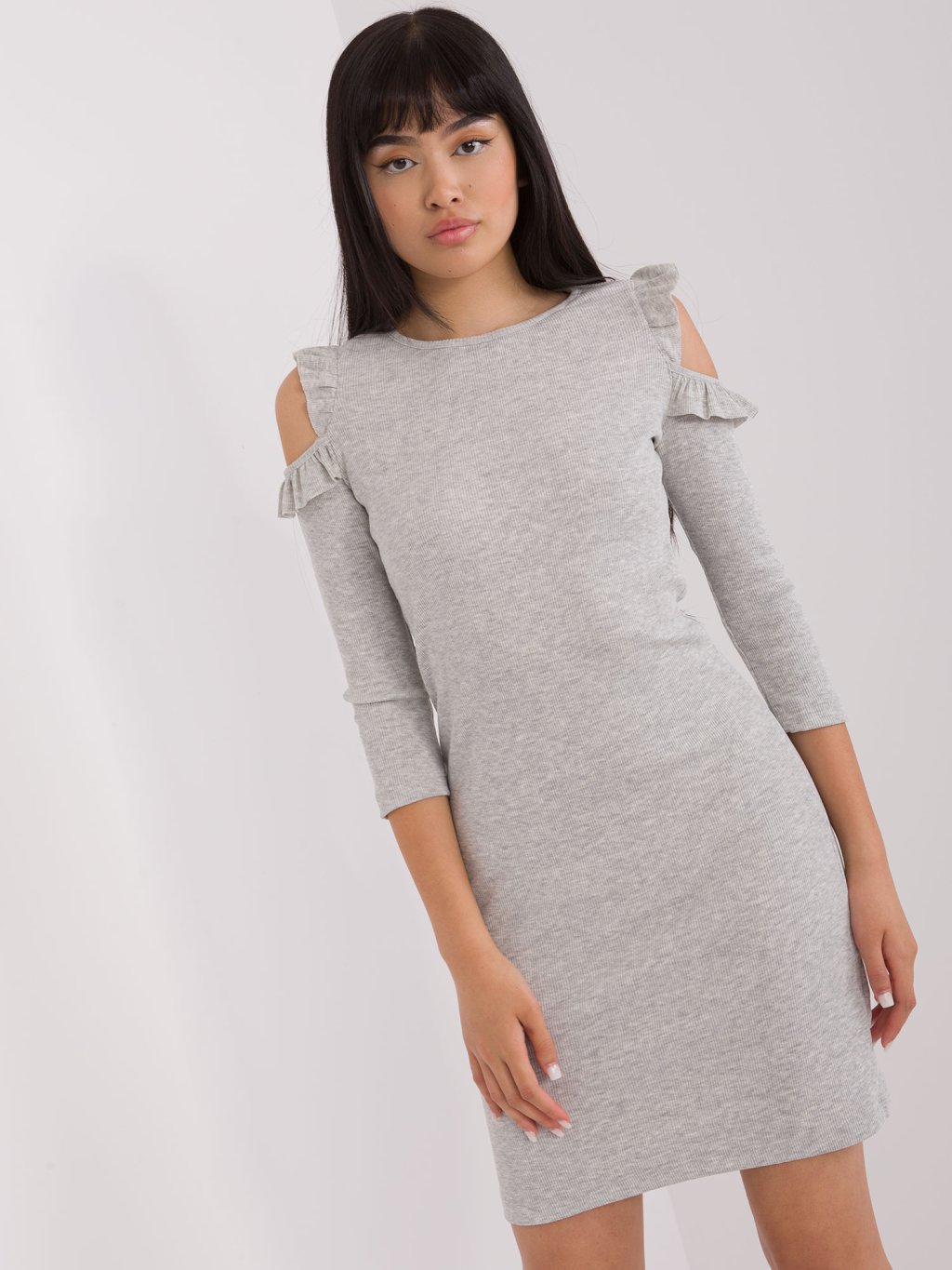 ŠEDÉ ŠATY S PROSTŘIHY NA RAMENOU