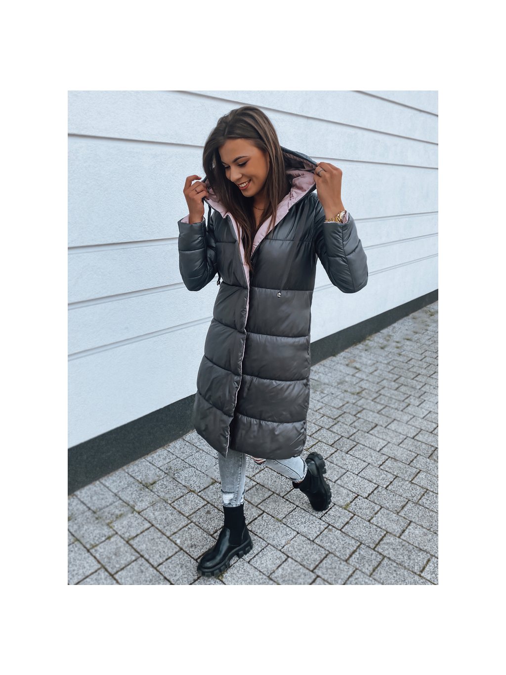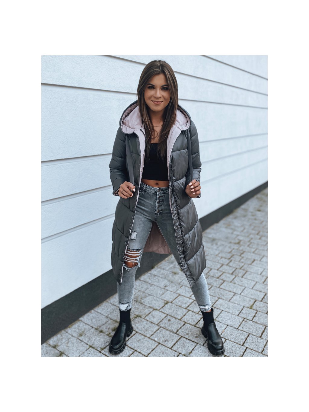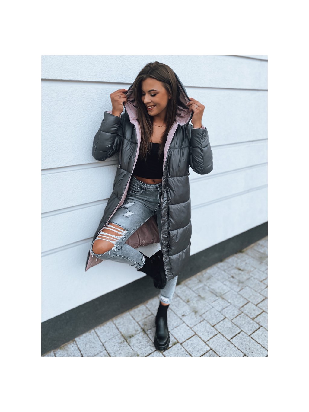 ŠEDO-FIALOVÝ OBOUSTRANNÝ DLOUHÝ KABÁT KERMIT