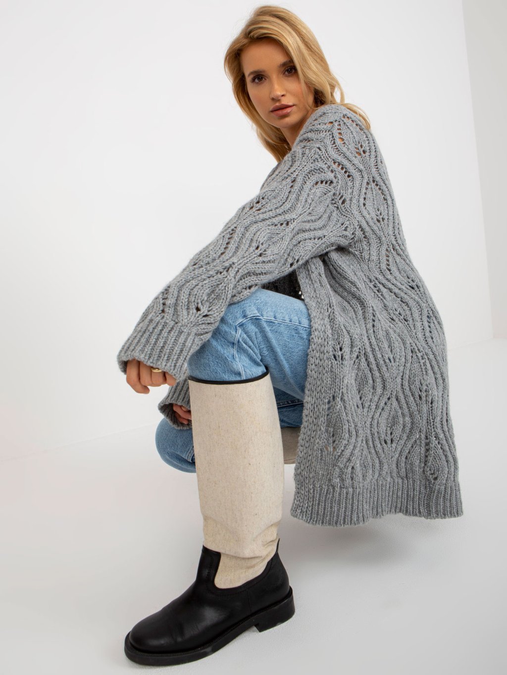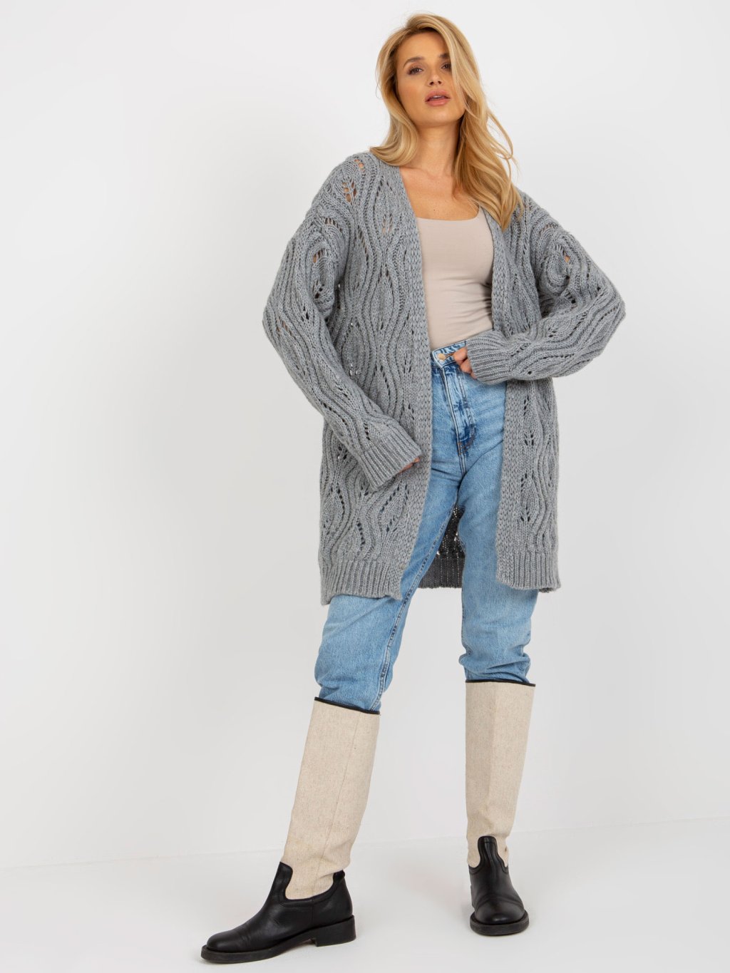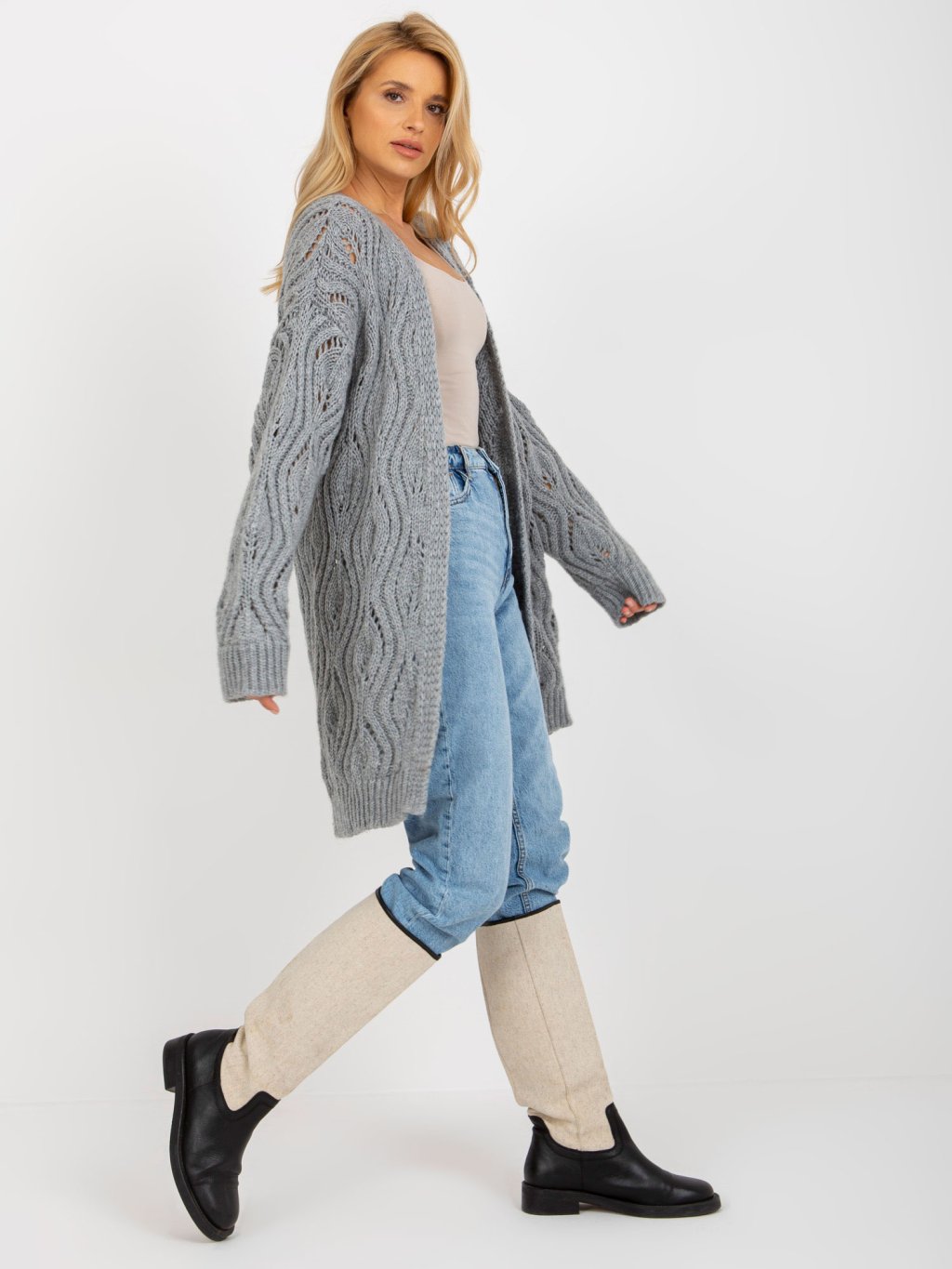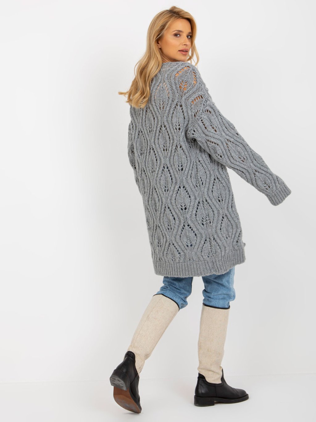 ŠEDÝ KARDIGAN SE VZORY