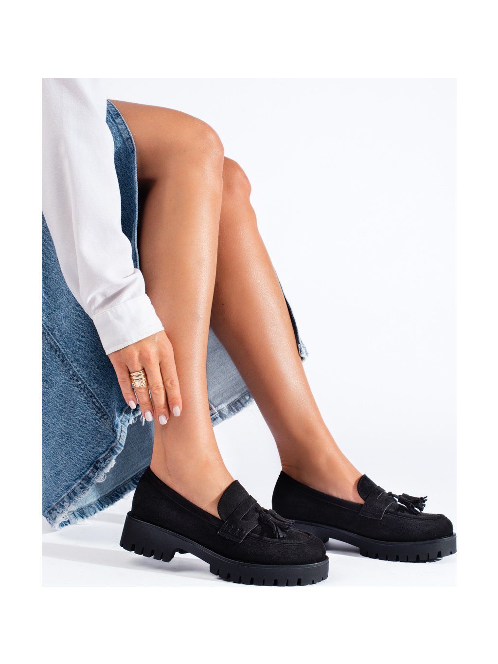 SEMIŠOVÉ ČERNÉ MOKASÍNY S TŘÁSNĚMI