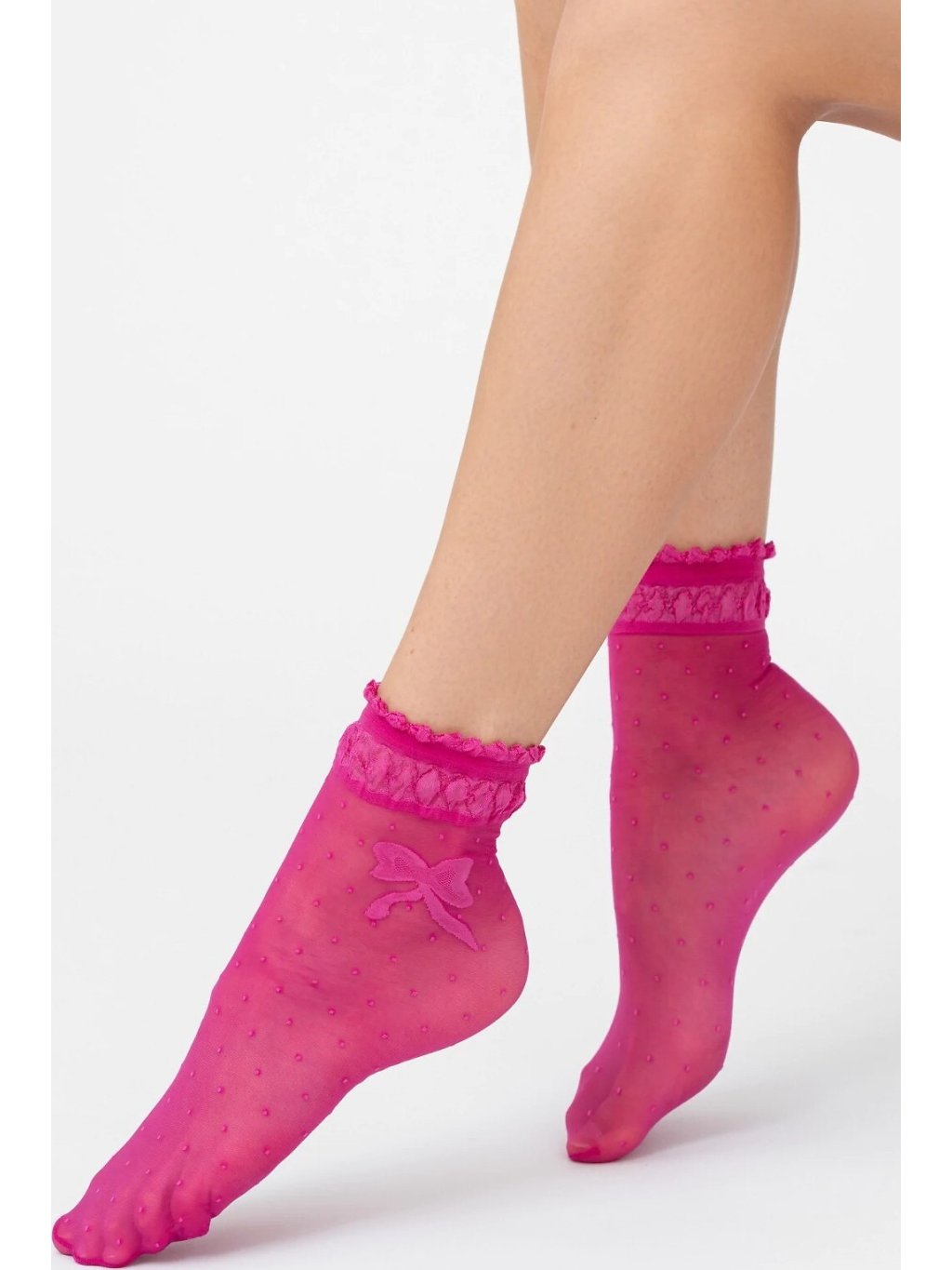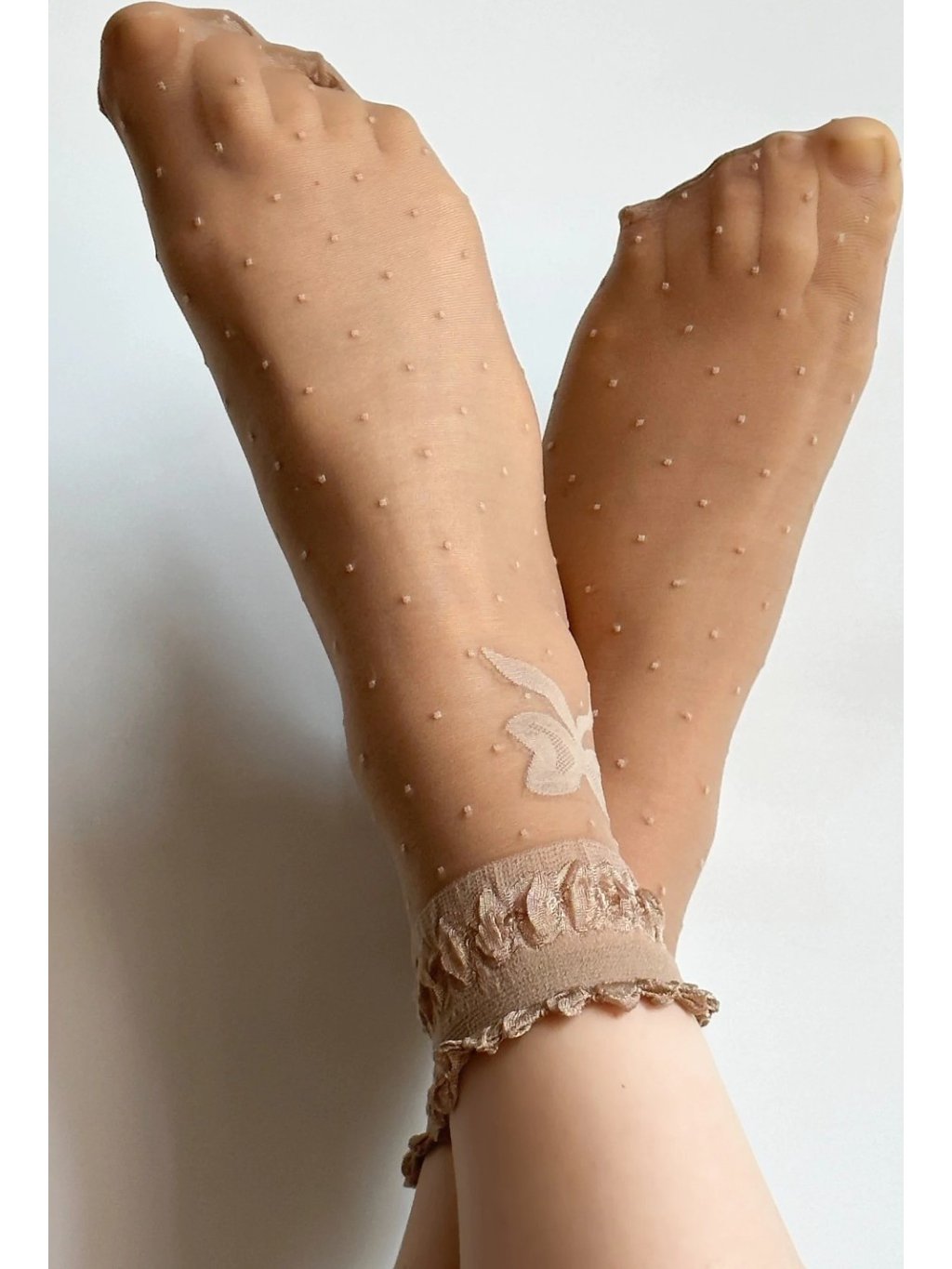 Tenké vzorované dámské ponožky s ozdobným lemem. Univerzální velikost.