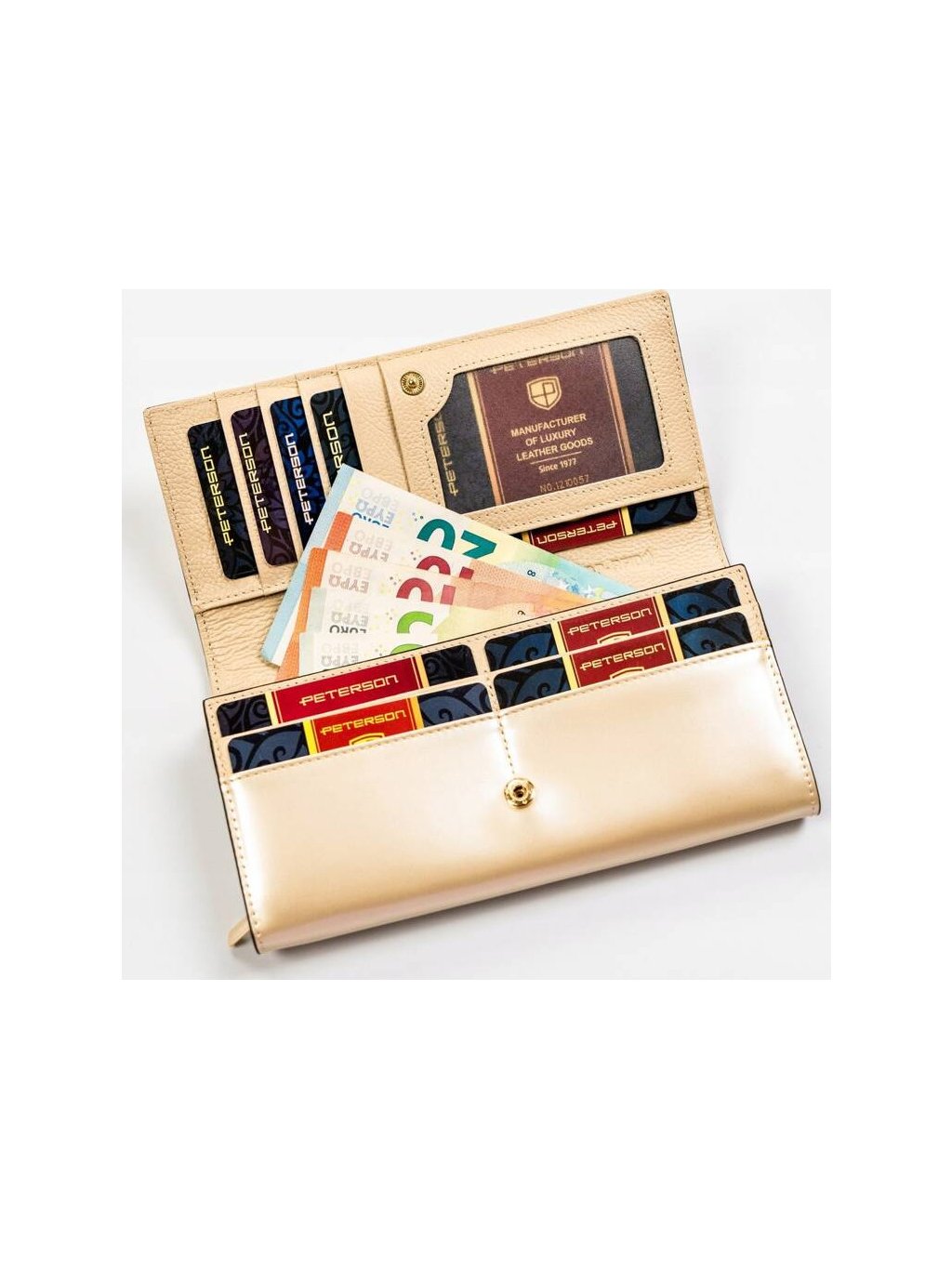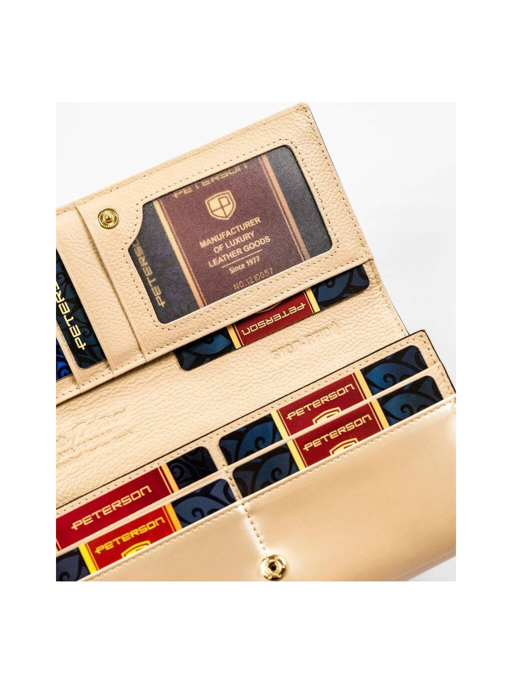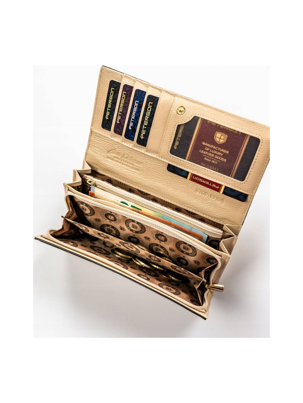 SMETANOVÁ DÁMSKÁ PENĚŽENKA SE ZAPÍNÁNÍM NA PATENTKU PETERSON Y740