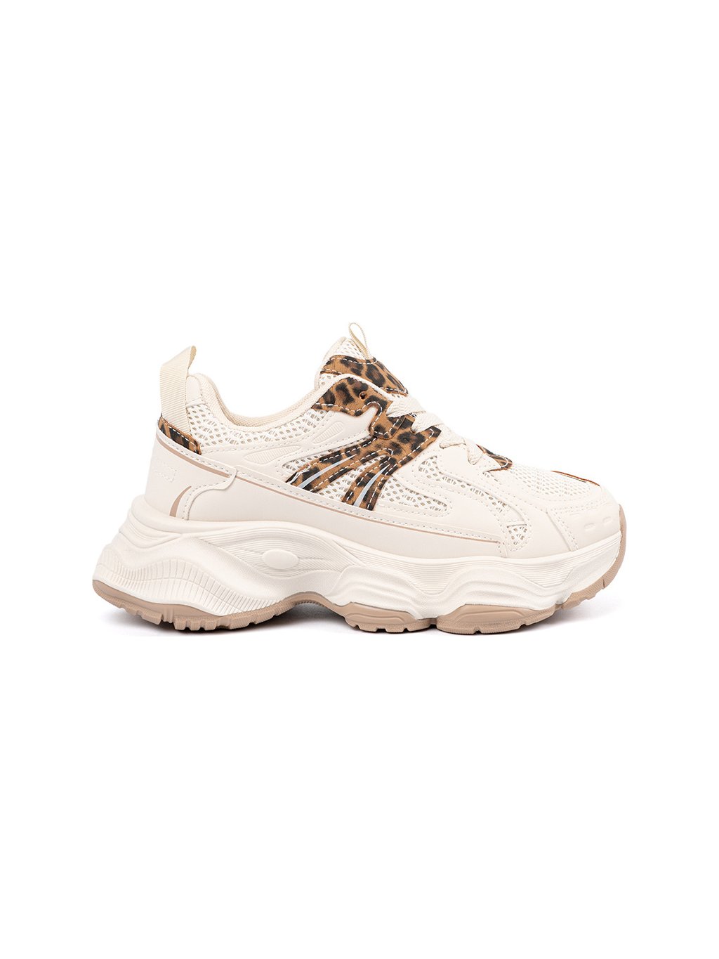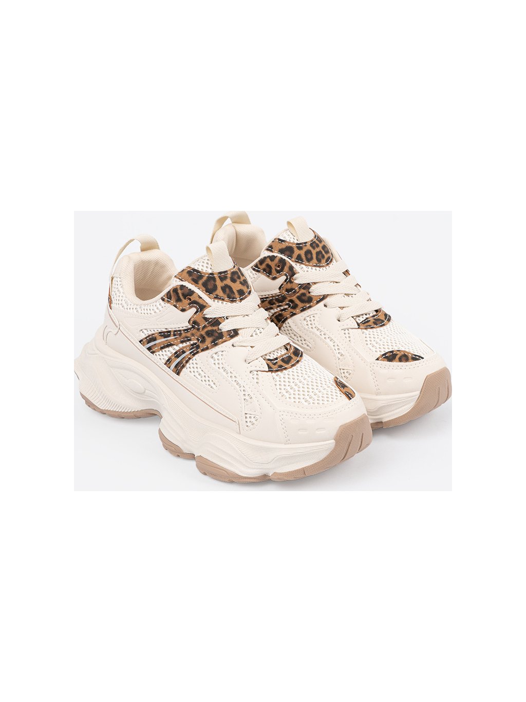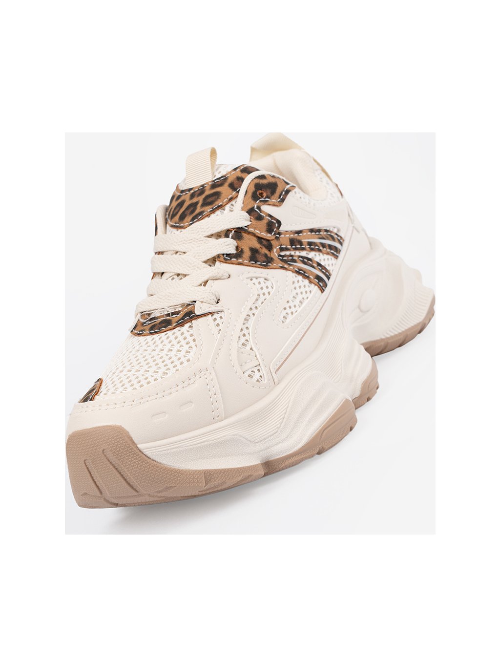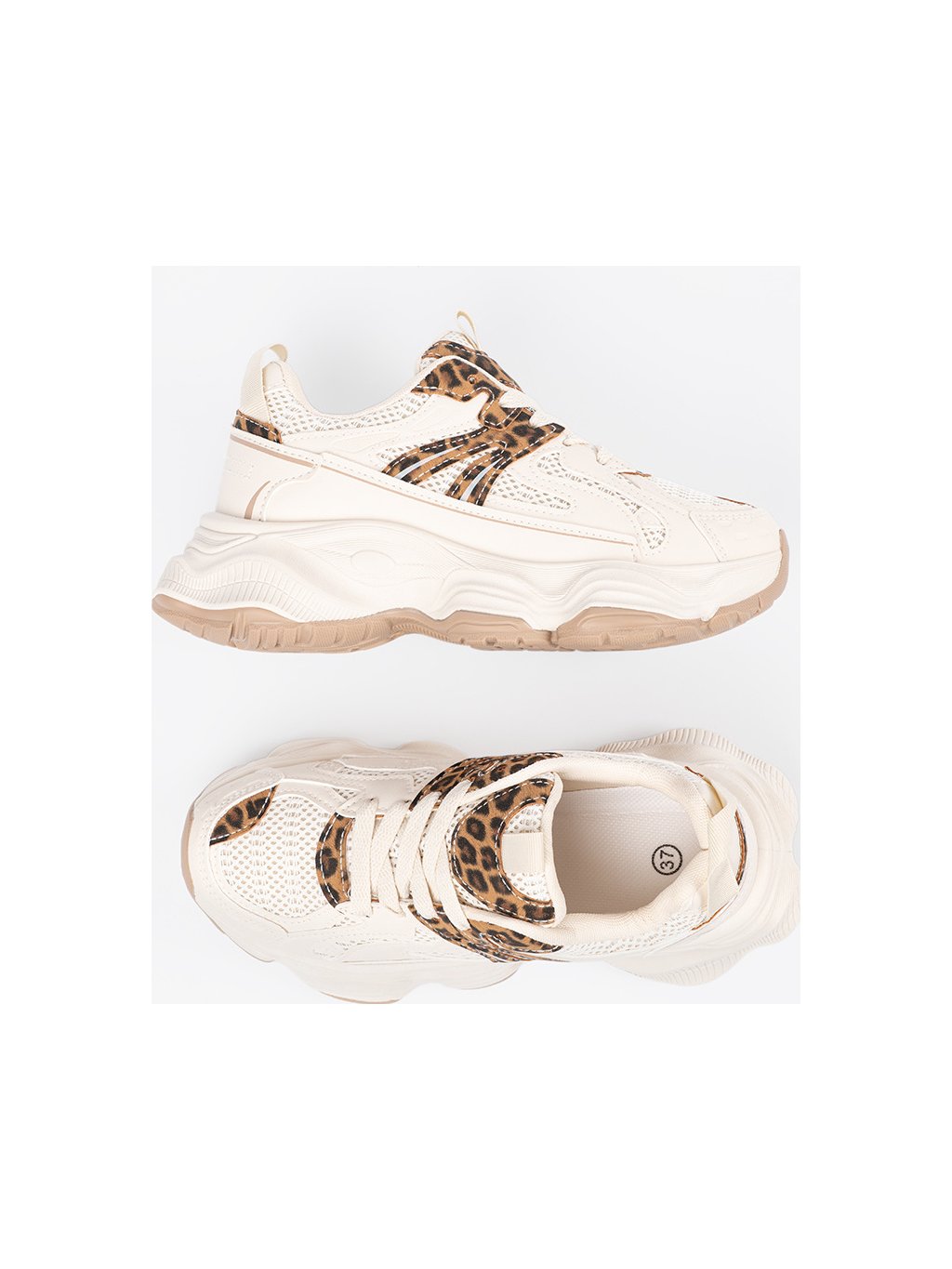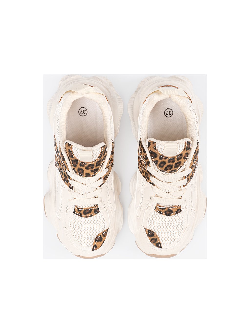 SMETANOVÉ DÁMSKÉ SNEAKERSY NA HRUBÉ PODRÁŽCE S LEOPARDÍMI DETAILY