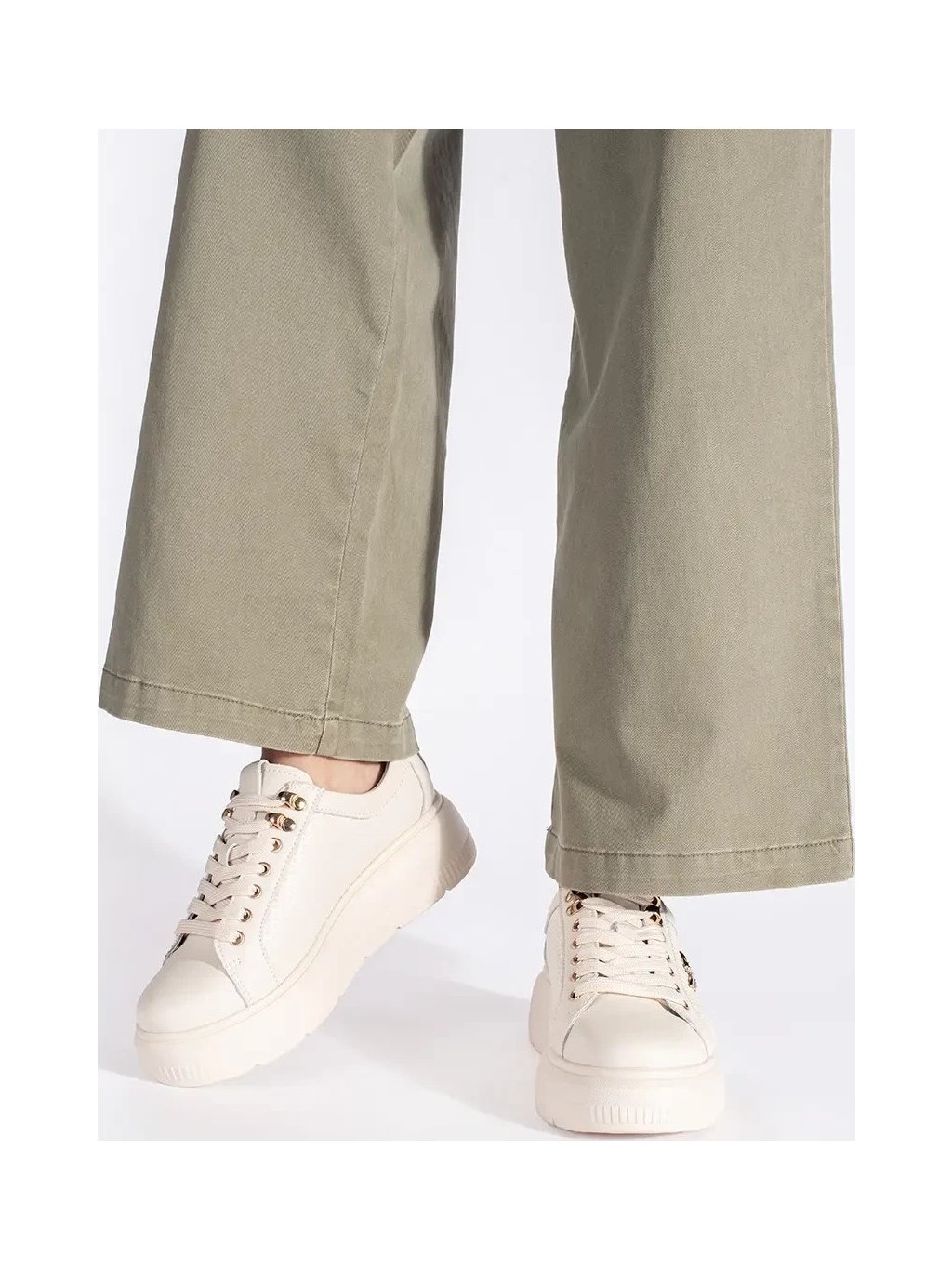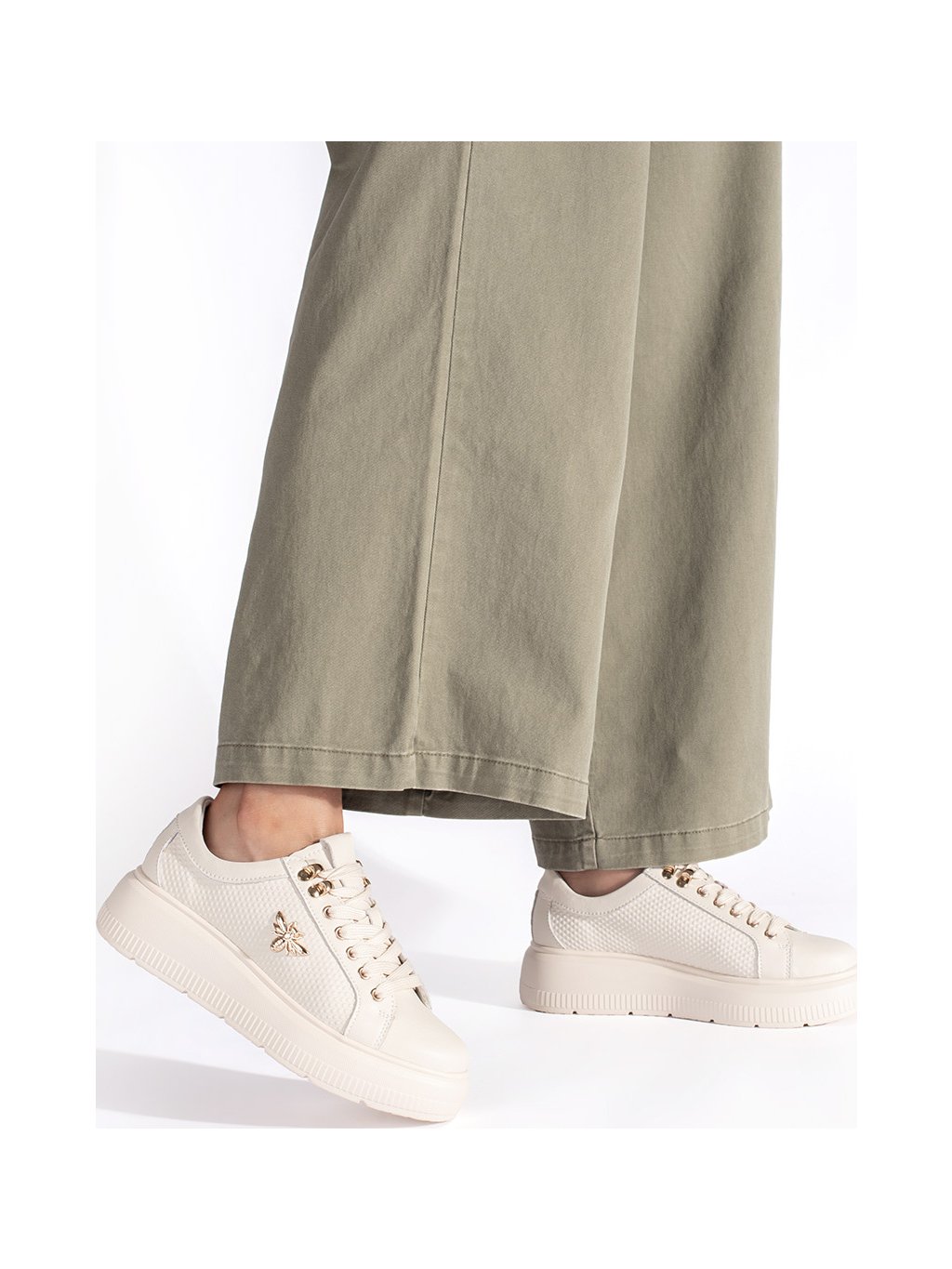 SMETANOVÉ KOŽENÉ SNEAKERSY NA PLATFORMĚ