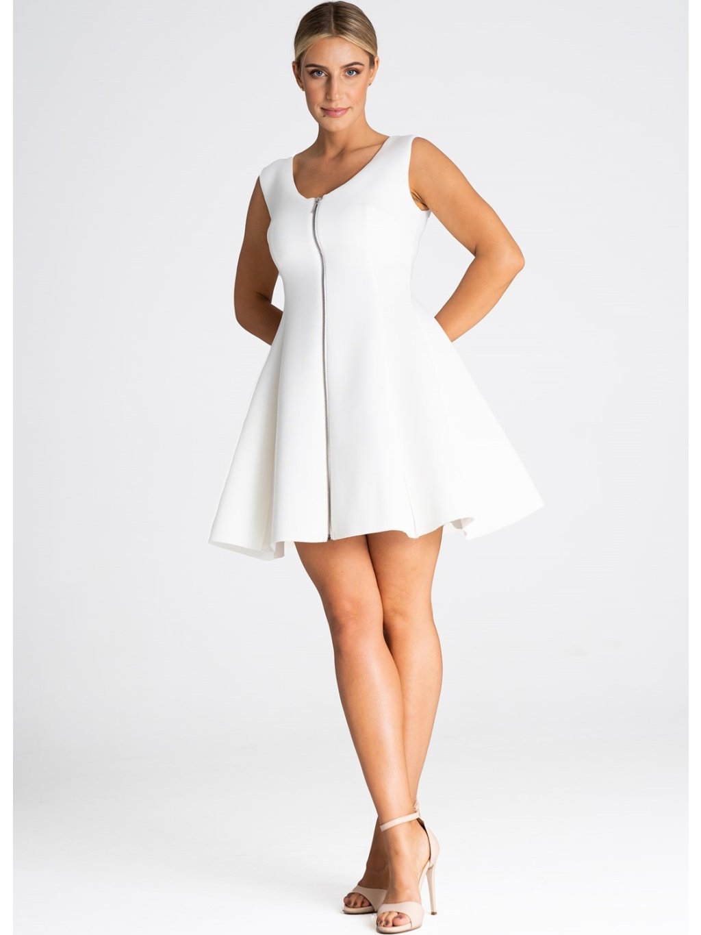 SMETANOVÉ MINI ŠATY S OZDOBNÝM ZIPEM