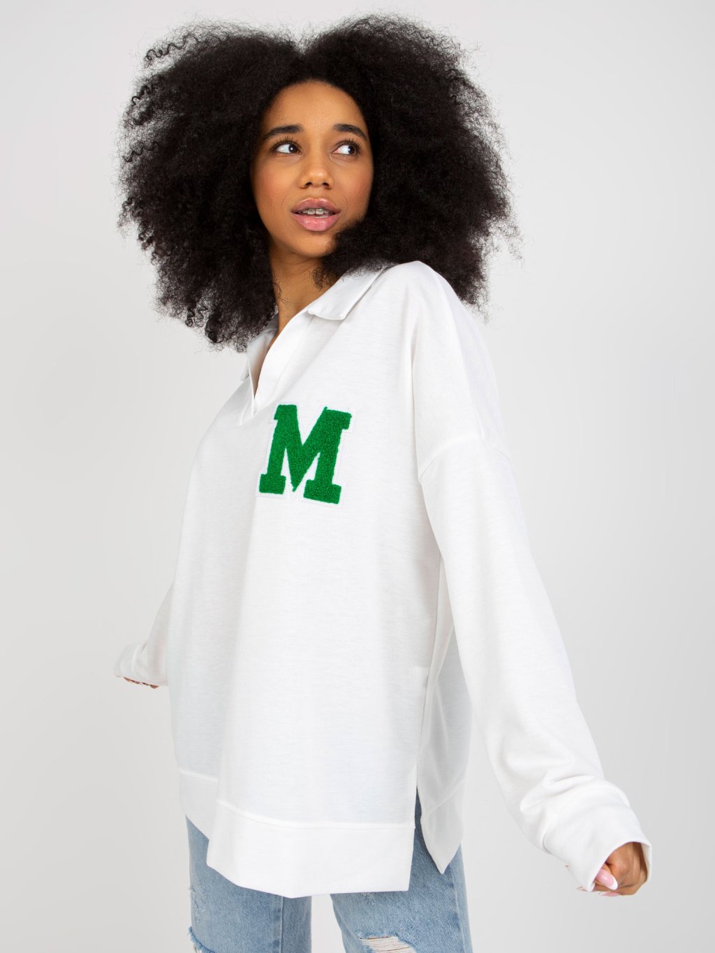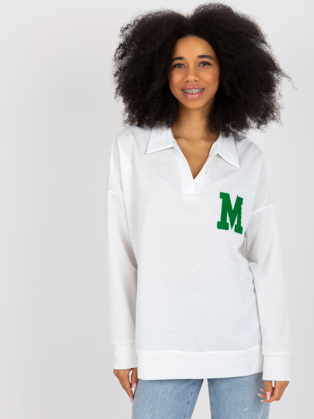 Modelka je oblečena do velikosti one size.