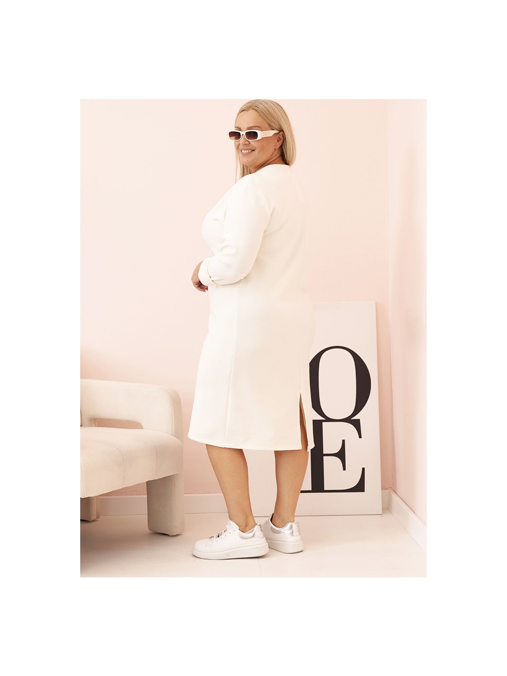 SMETANOVÉ PLUS SIZE ŠATY S VÝSTŘIHEM DO V A 3/4 RUKÁVY
