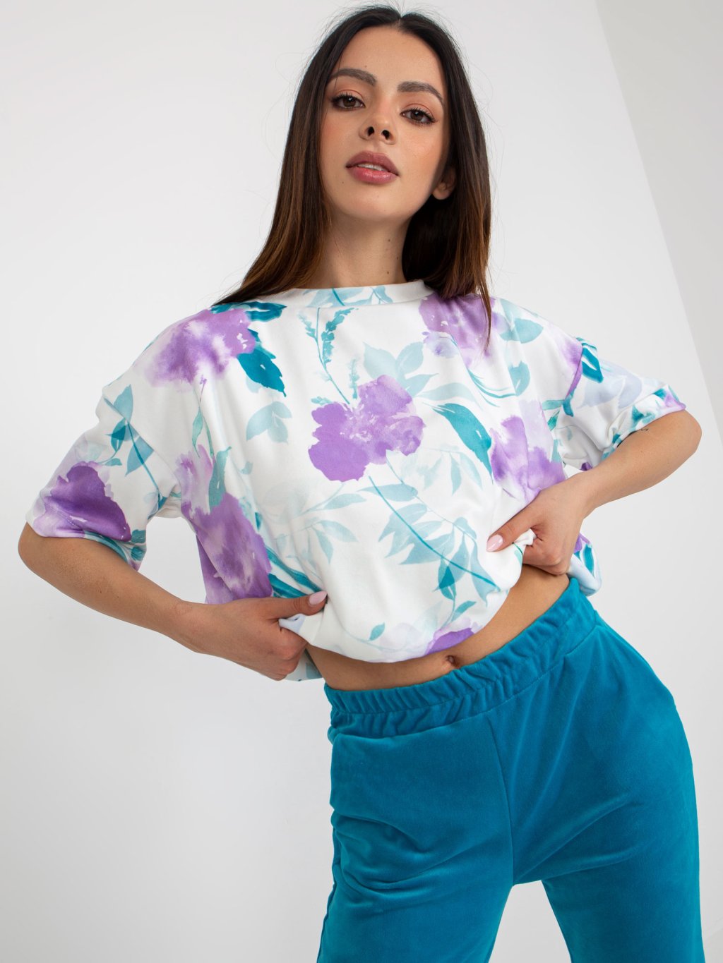 SMETANOVO-MODRÝ KOMPLET S KRÁTKÝM RUKÁVEM