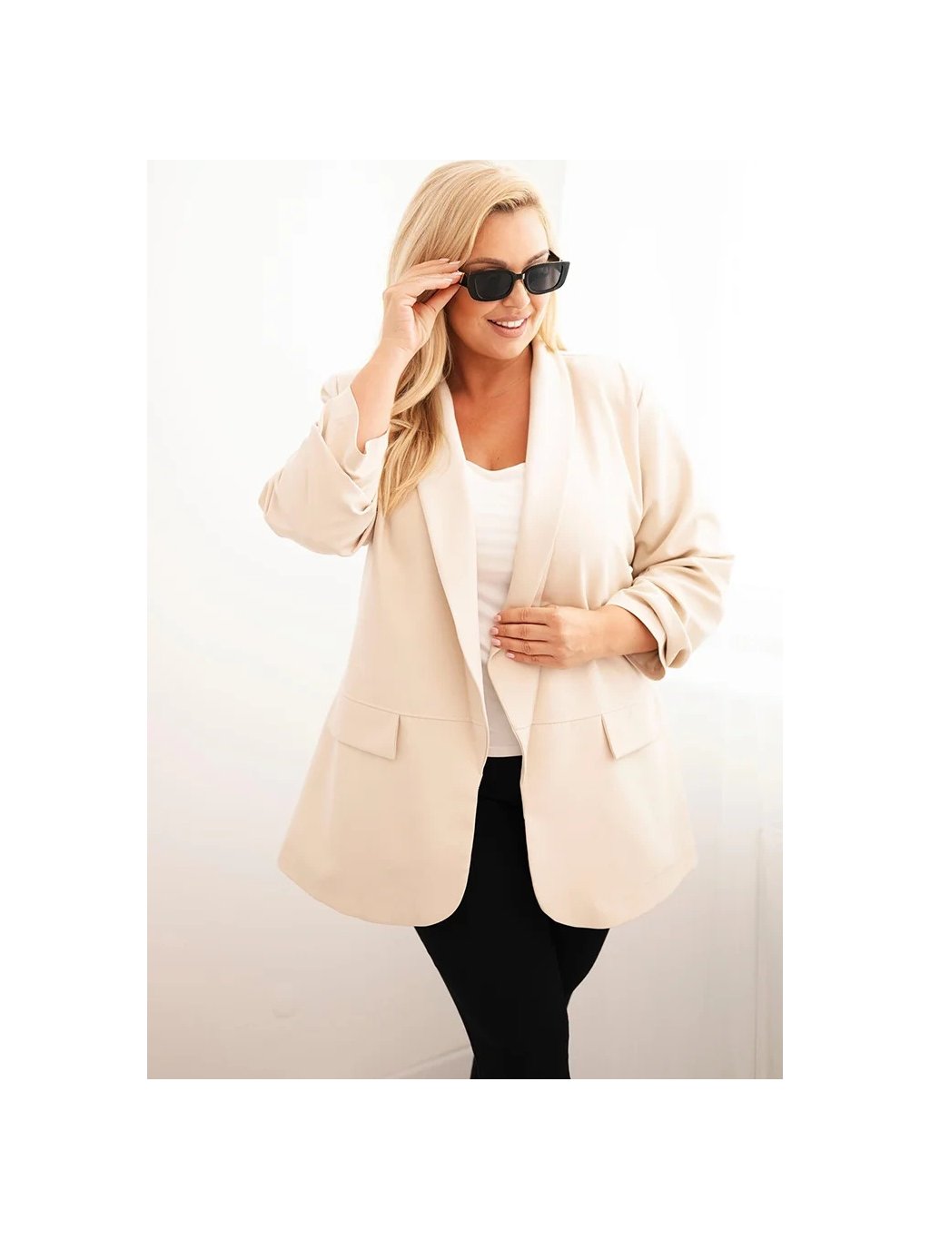 SMETANOVÝ DÁMSKÝ ELEGANTNÍ PLUS SIZE BLEJZR