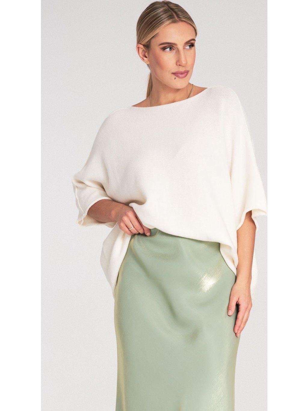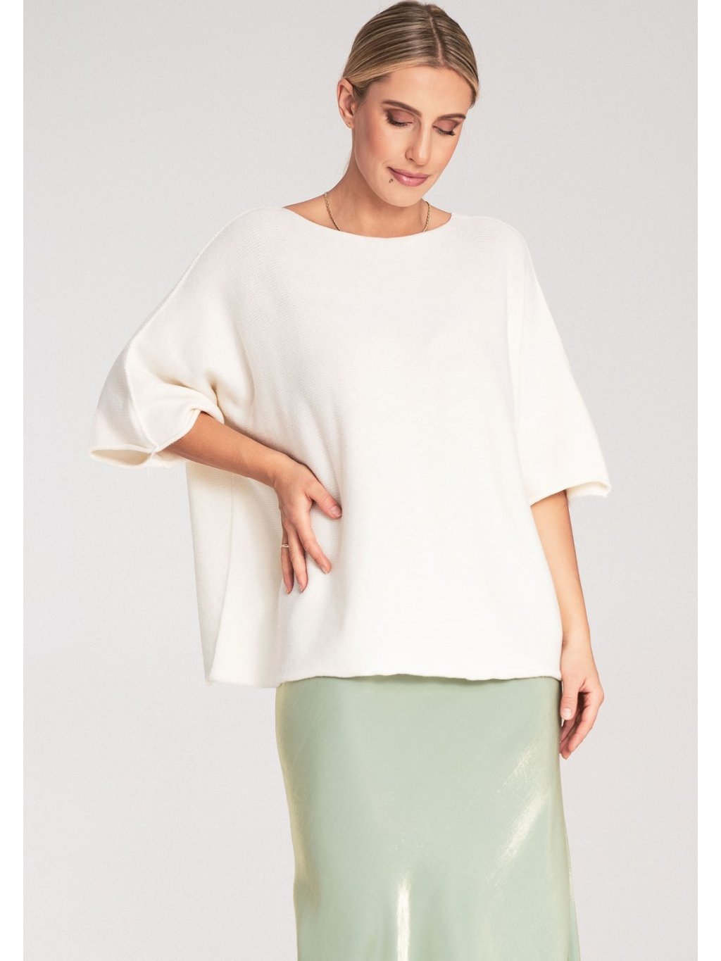 SMETANOVÝ DÁMSKÝ OVERSIZE SVETR SE ŠIROKÝMI RUKÁVY