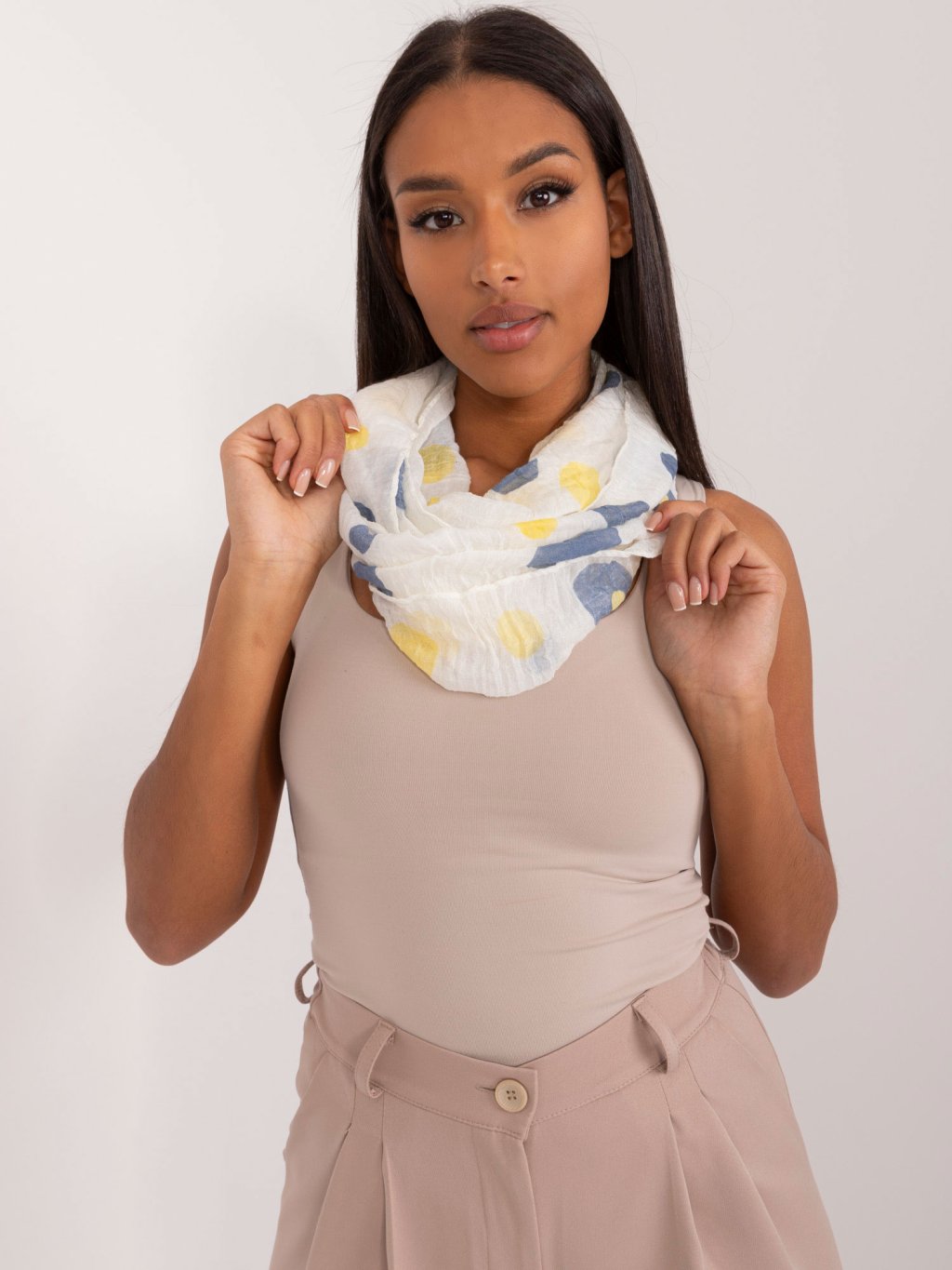 SMETANOVÝ ŠÁTEK S PUNTÍKY -TMAVĚ MODRÁ-ŽLUTÁ