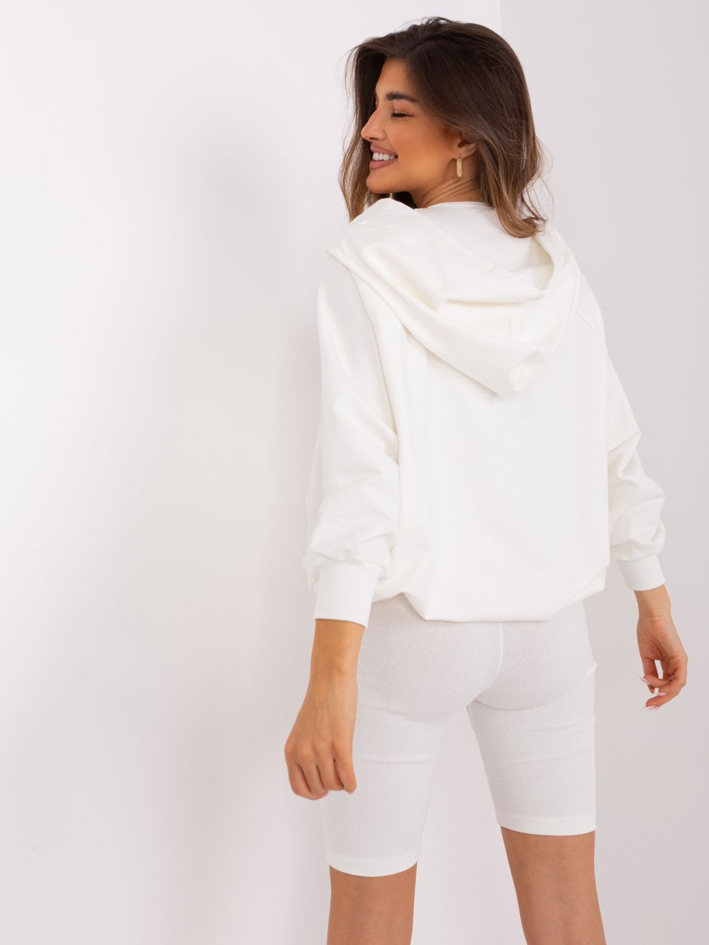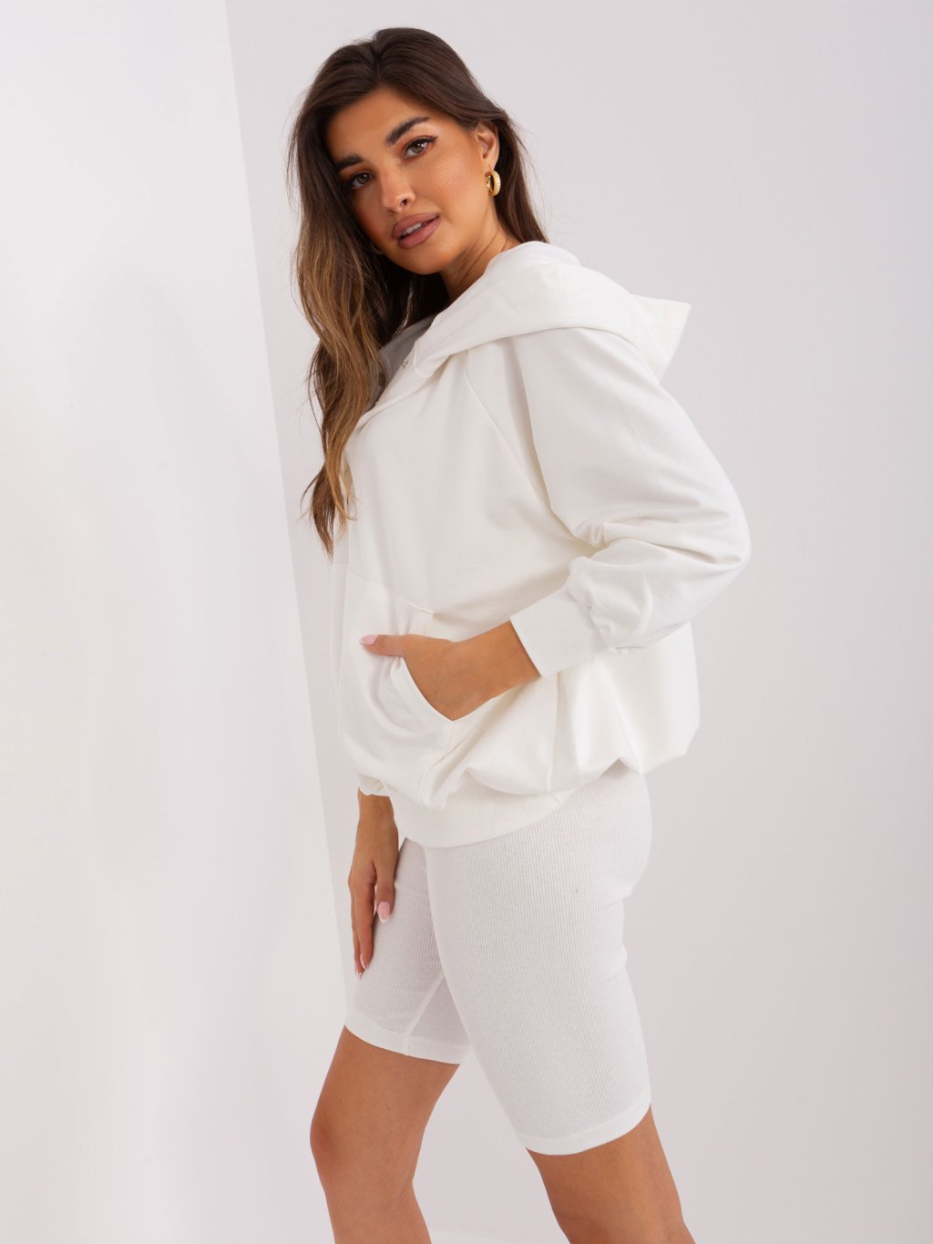 SMETANOVÝ TŘÍDÍLNÝ KOMPLET ŠORTEK, CROP TOPU A MIKINY
