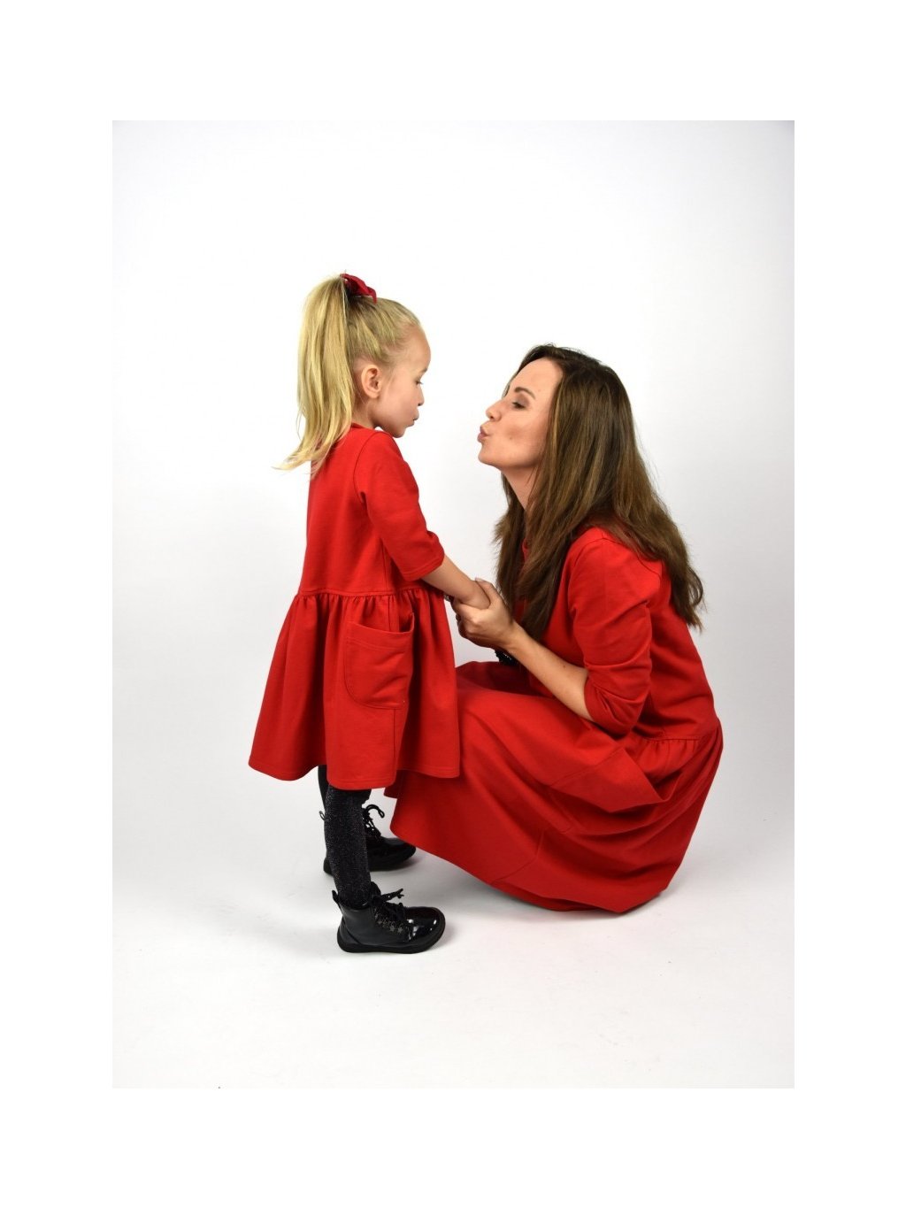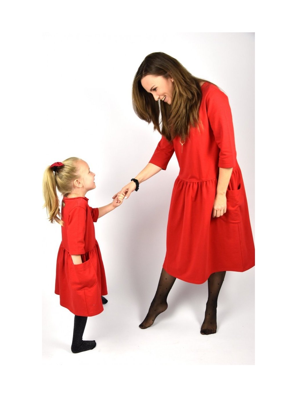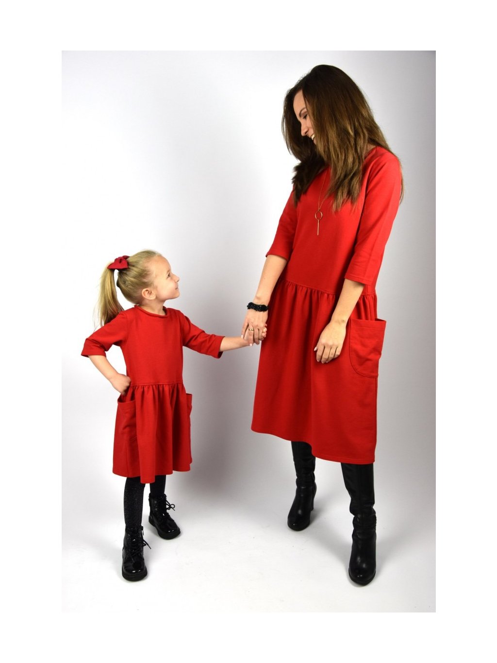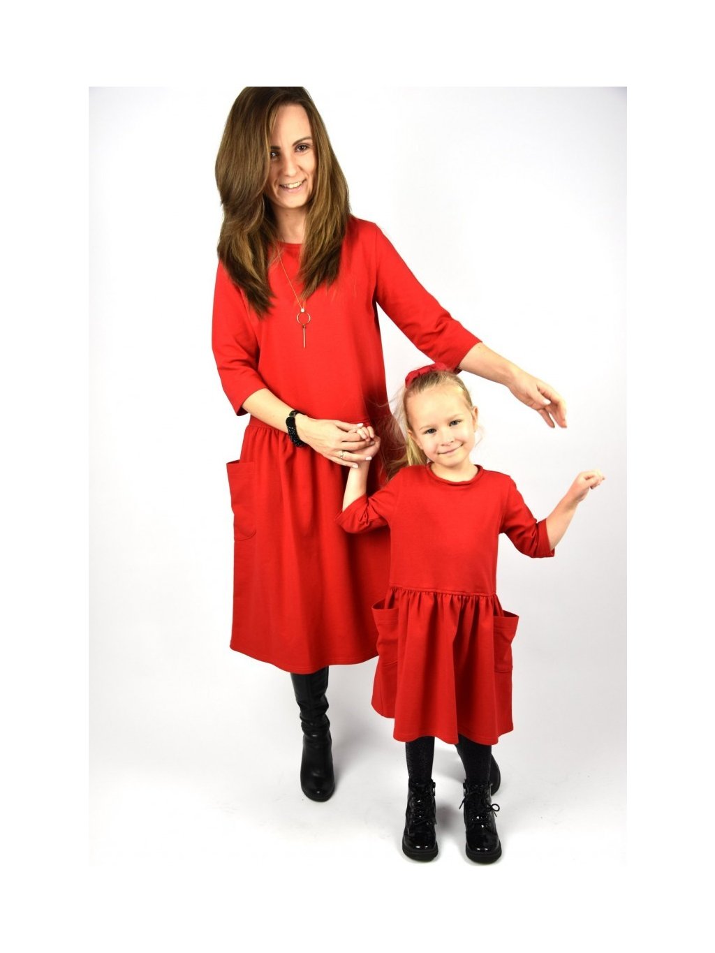 ČERVENÉ ŠATY S KAPSAMI PRO MAMINKU A DCERU