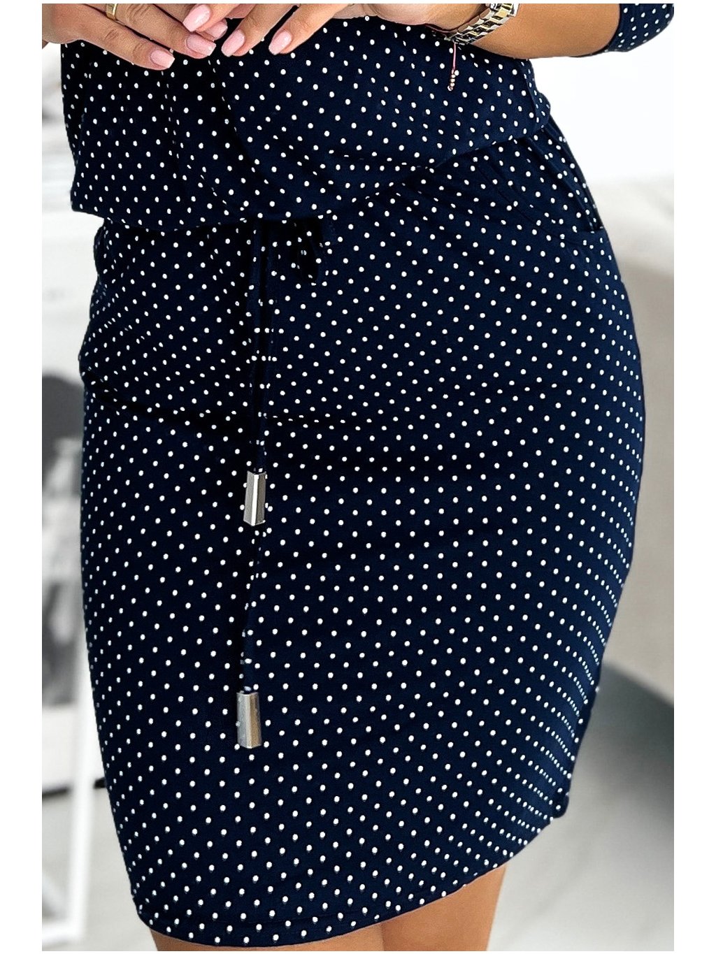 SPORTOVNÍ TMAVĚ MODRÉ ŠATY S PUNTÍKY FEDERICA