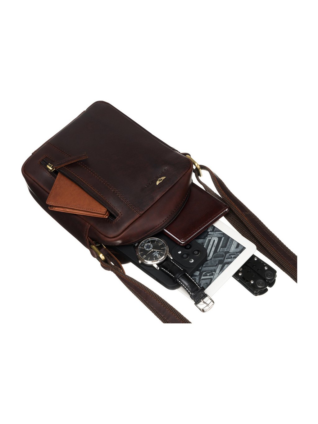 STYLOVÁ TMAVĚ HNĚDÁ PÁNSKÁ KOŽENÁ TAŠKA PŘES RAMENO PETERSON