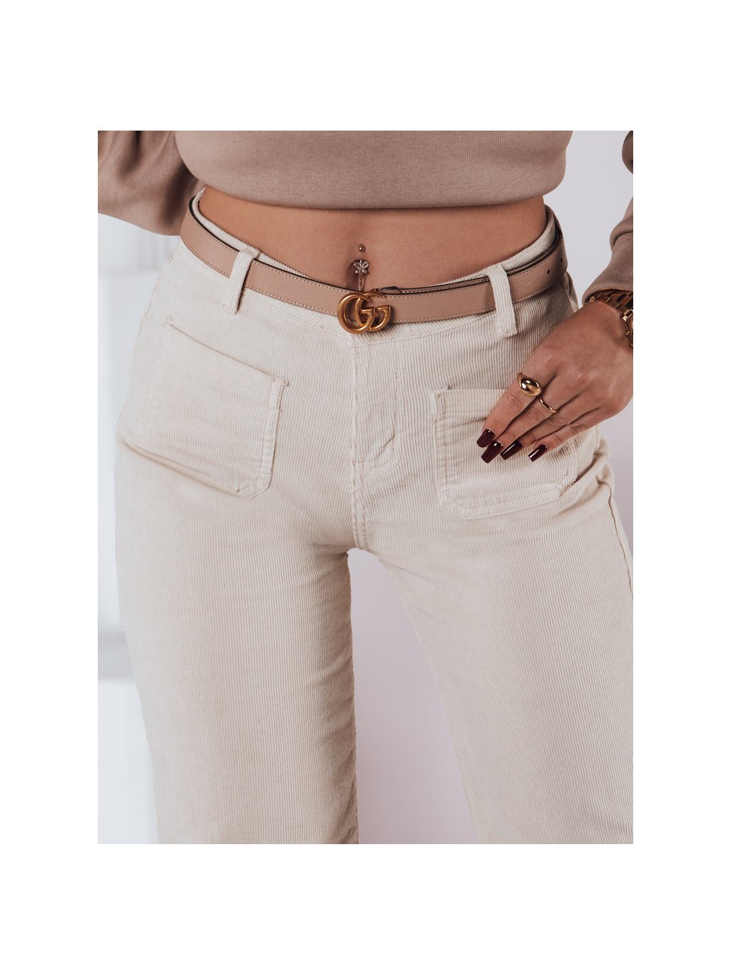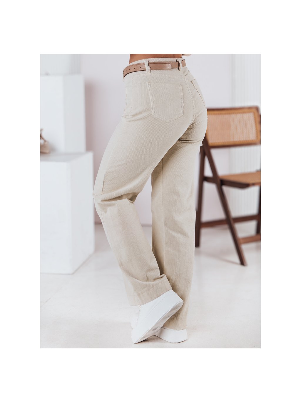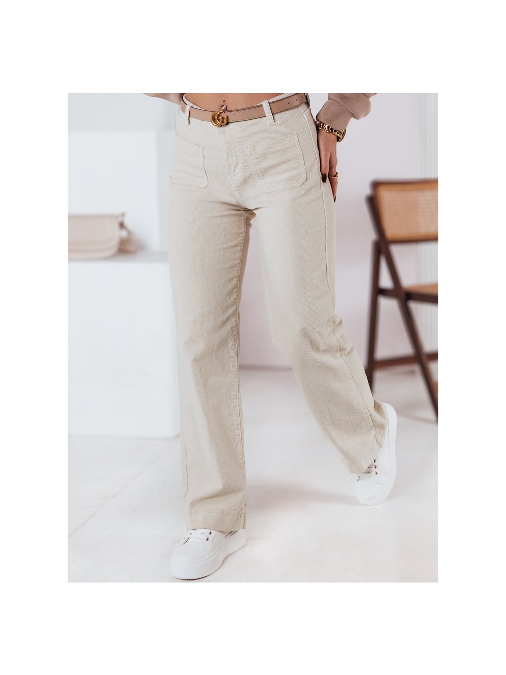 SVĚTLE BÉŽOVÉ DÁMSKÉ ŠIROKÉ MANŠESTROVÉ KALHOTY WELVIA
