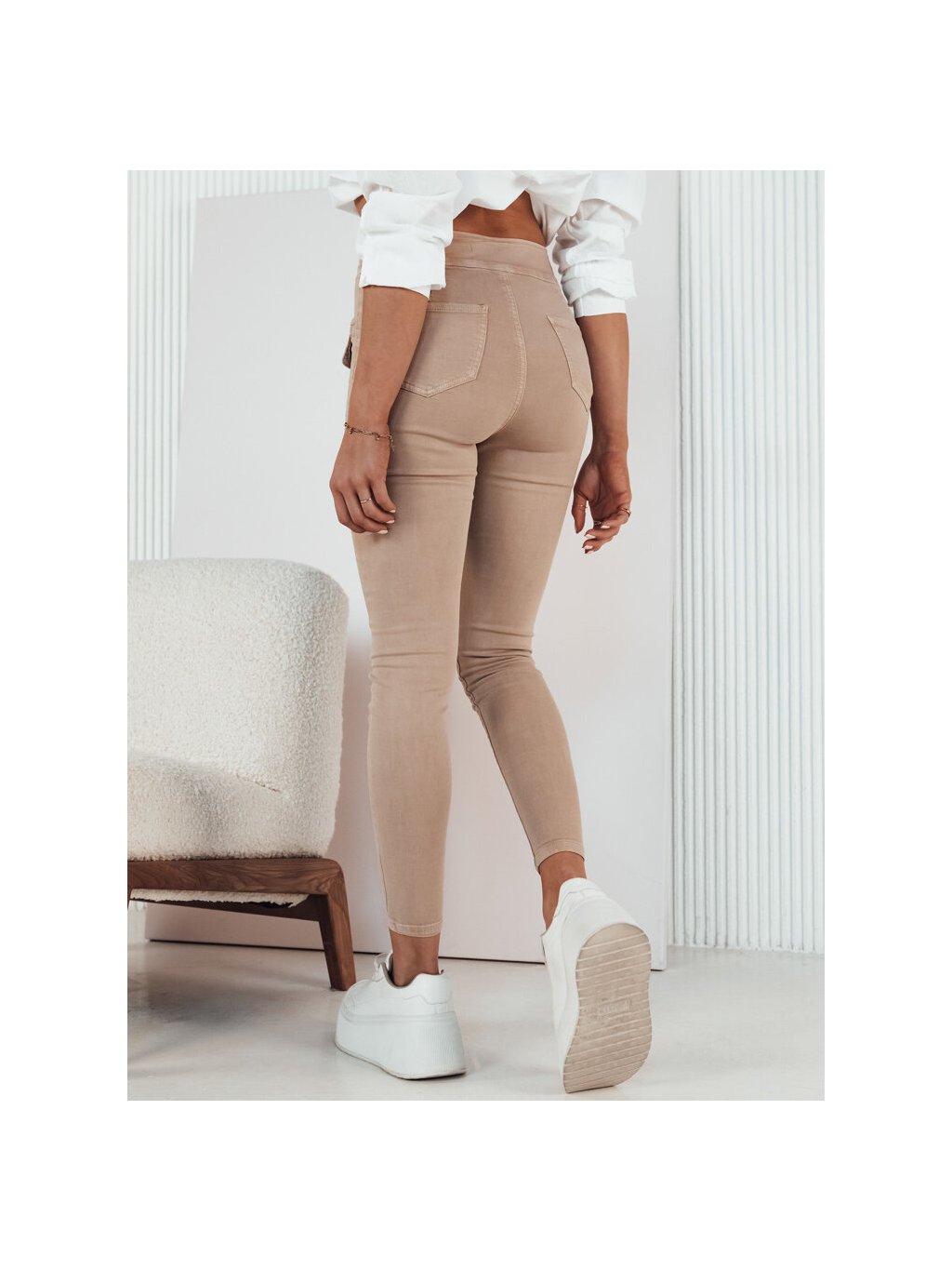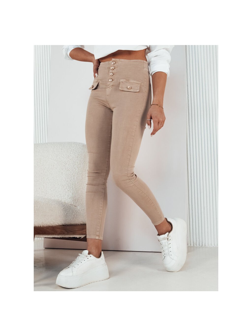 SVĚTLE BÉŽOVÉ DŽÍNOVÉ KALHOTY S VYSOKÝM PASEM SKULL